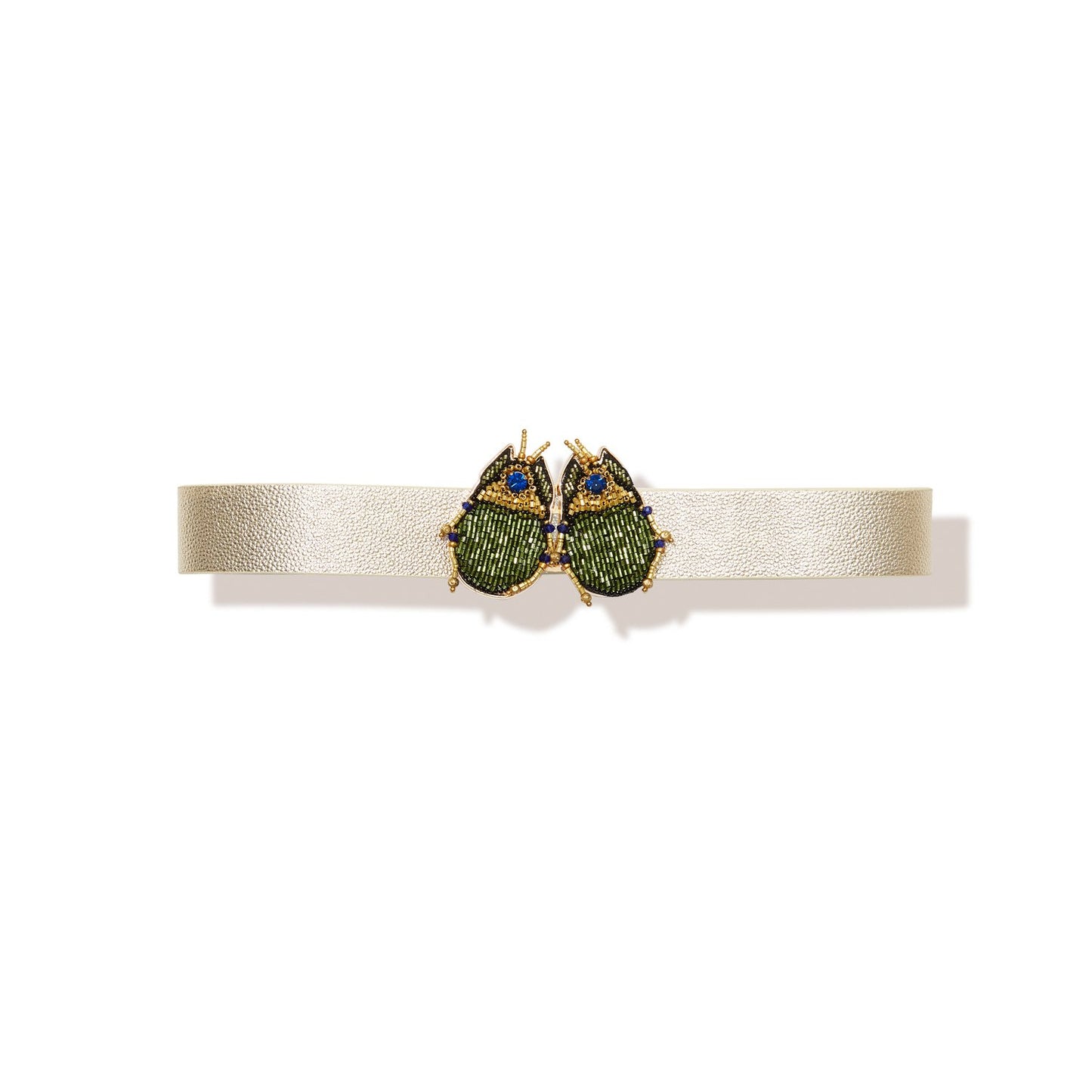 Inspired by green beetles found in Europe, our sophisticated scarabs are handcrafted with mixed glass beads and seed border in gold plated hardware. Historically a good luck symbol of hope and strength, wear your secret weapon to work or gift to a bestie who could use a change of fortune.