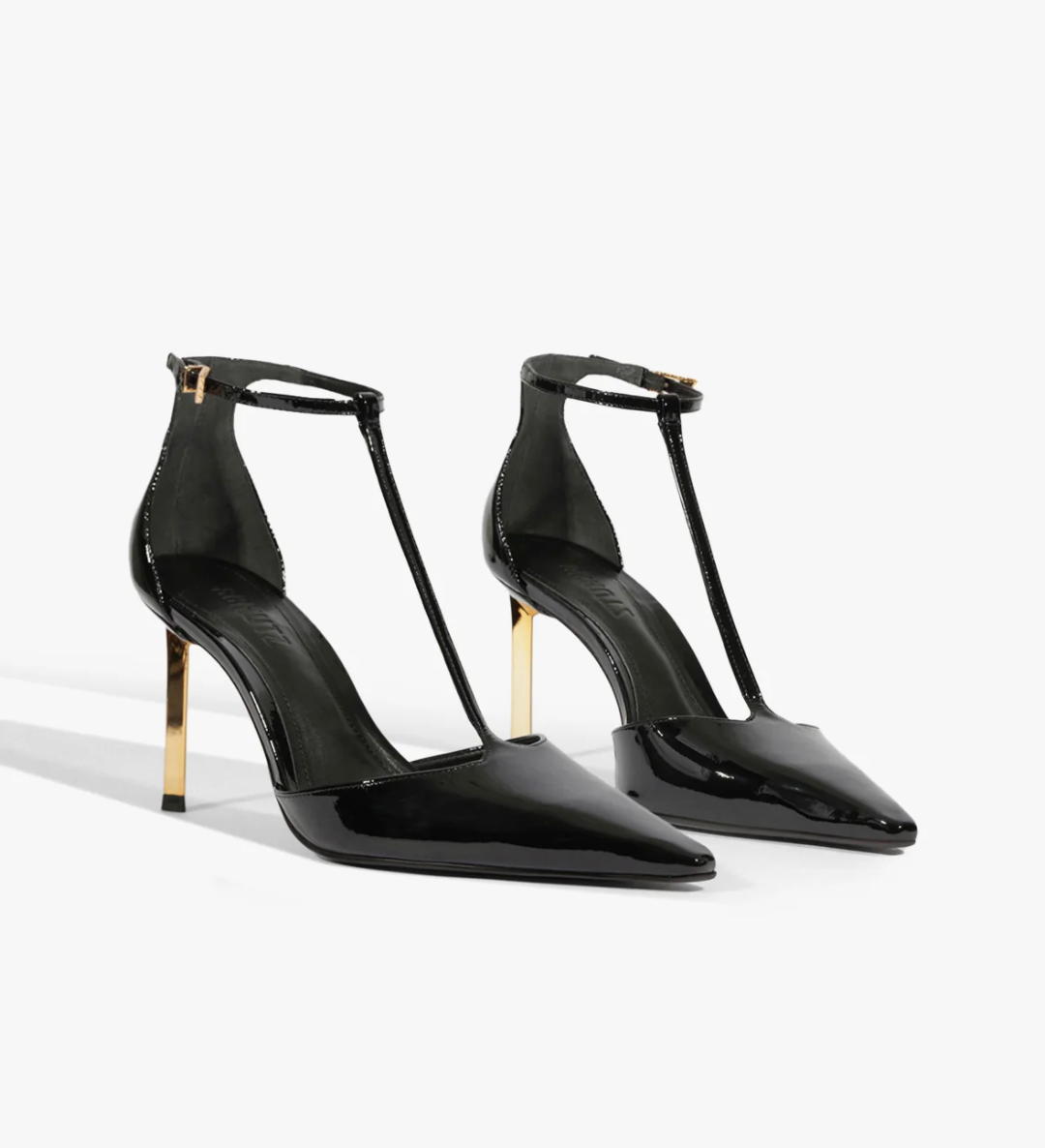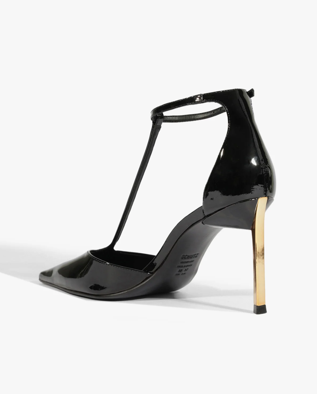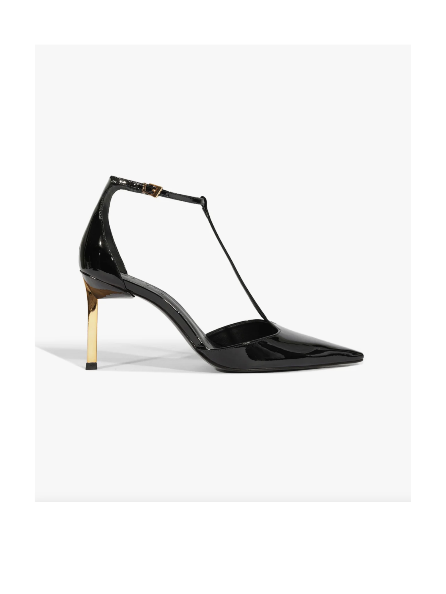 The Allure T pumps are your secret weapon for an unapologetic entrance. Razor-sharp details, a fierce gold stiletto, and a daring T-strap bring all the drama. Whether you're stepping into a rooftop party or a high-stakes meeting, these heels do the talking. The glossy finish isn't just for looks—it's a statement. Stride with purpose and leave everyone speechless.