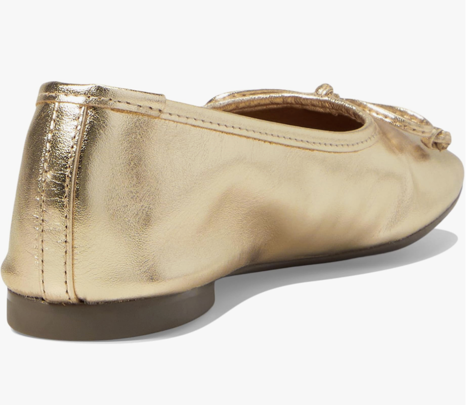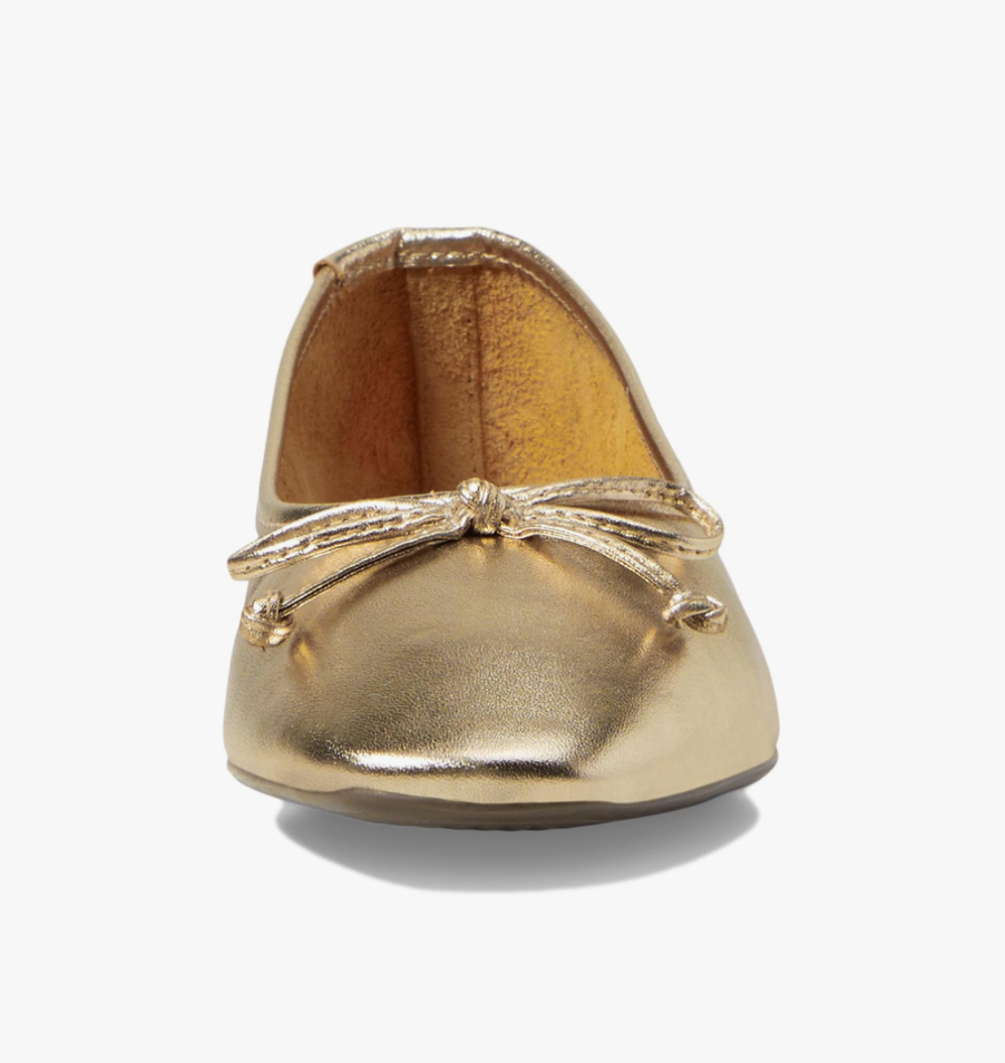 The most-loved ballet flat is back for the season in a metallic leather. This season, the ballet flat is back and chicer than ever. The newest take on the classic style features a modern square-shaped toe for an on-trend update to the timeless silhouette. This versatile flat will ground any look, from casual denim to day dresses, with a touch of easy elegance.