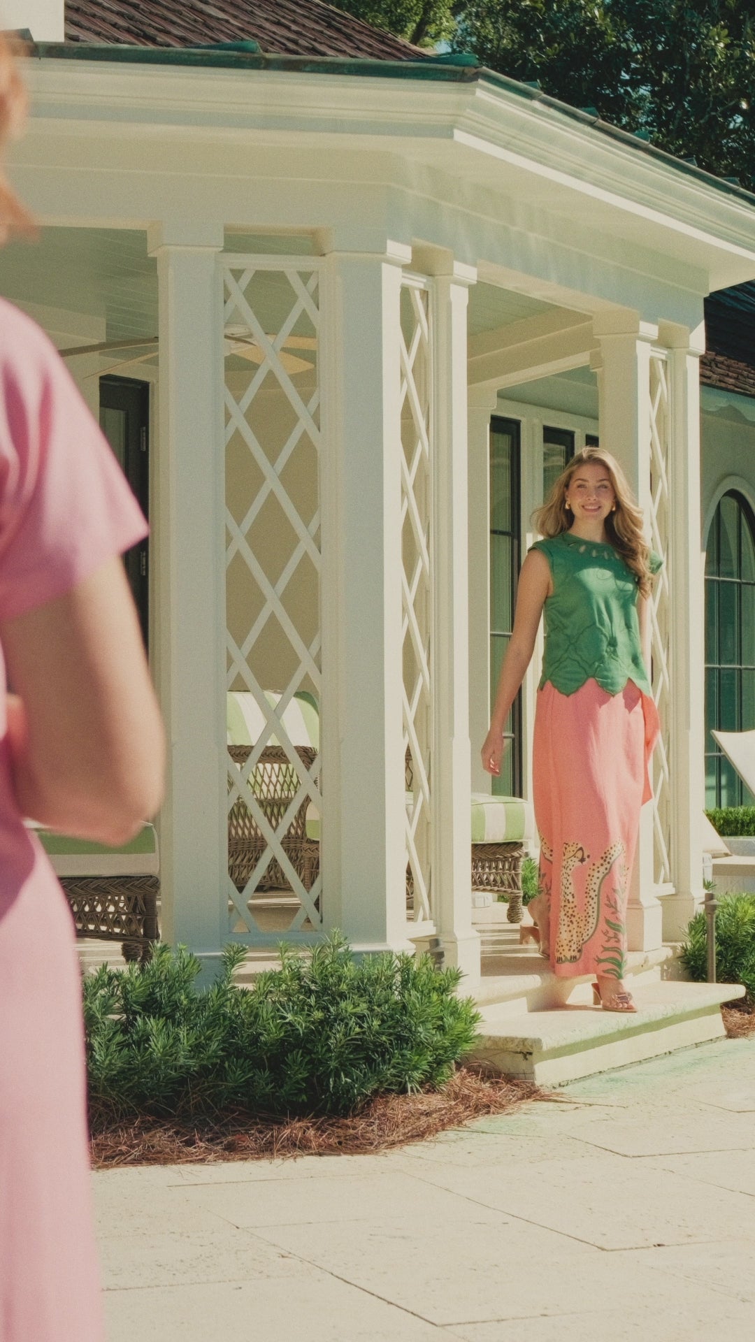 The Audrey Skirt in Cabana Cat is a statement in fluid playfulness. Designed with a high-waisted silhouette, it features a pre-tied, tacked bow at the waist and a clean side zip closure for a clean finish. The Cabana Cat motif introduces a sense of whimsical majesty, showcasing symmetrical regal cheetahs framing lush greenery for a look that feels both artful and elevated.