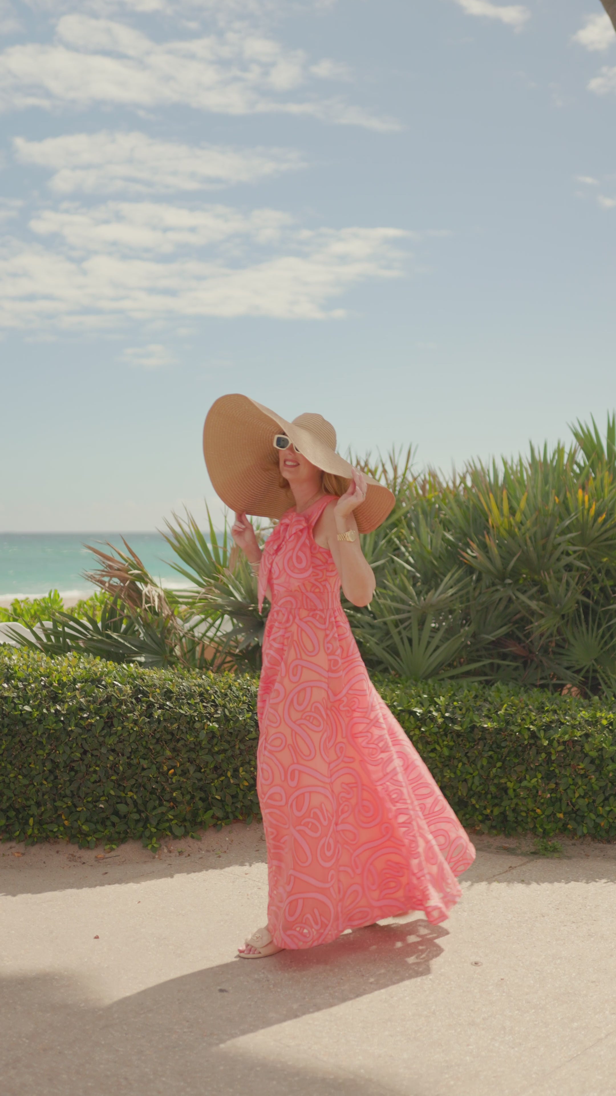 Radiate pure joy in the Bella Maxi Joy/Coral, a masterpiece of playful elegance designed for your most cherished occasions. Crafted from ethereal sheer organza fabric, this dress features the word "joy" delicately stitched in cursive, creating a unique and captivating texture. The coral lining peeks through the organza, adding a vibrant pop of color and enhancing the dress's depth and dimension. A stitched bow at the neckline makes a dramatic statement, adding a touch of whimsical charm and undeniable glamour. Perfect for elevated occasions like weddings or formal parties, this dress is sure to turn heads and spark conversations.