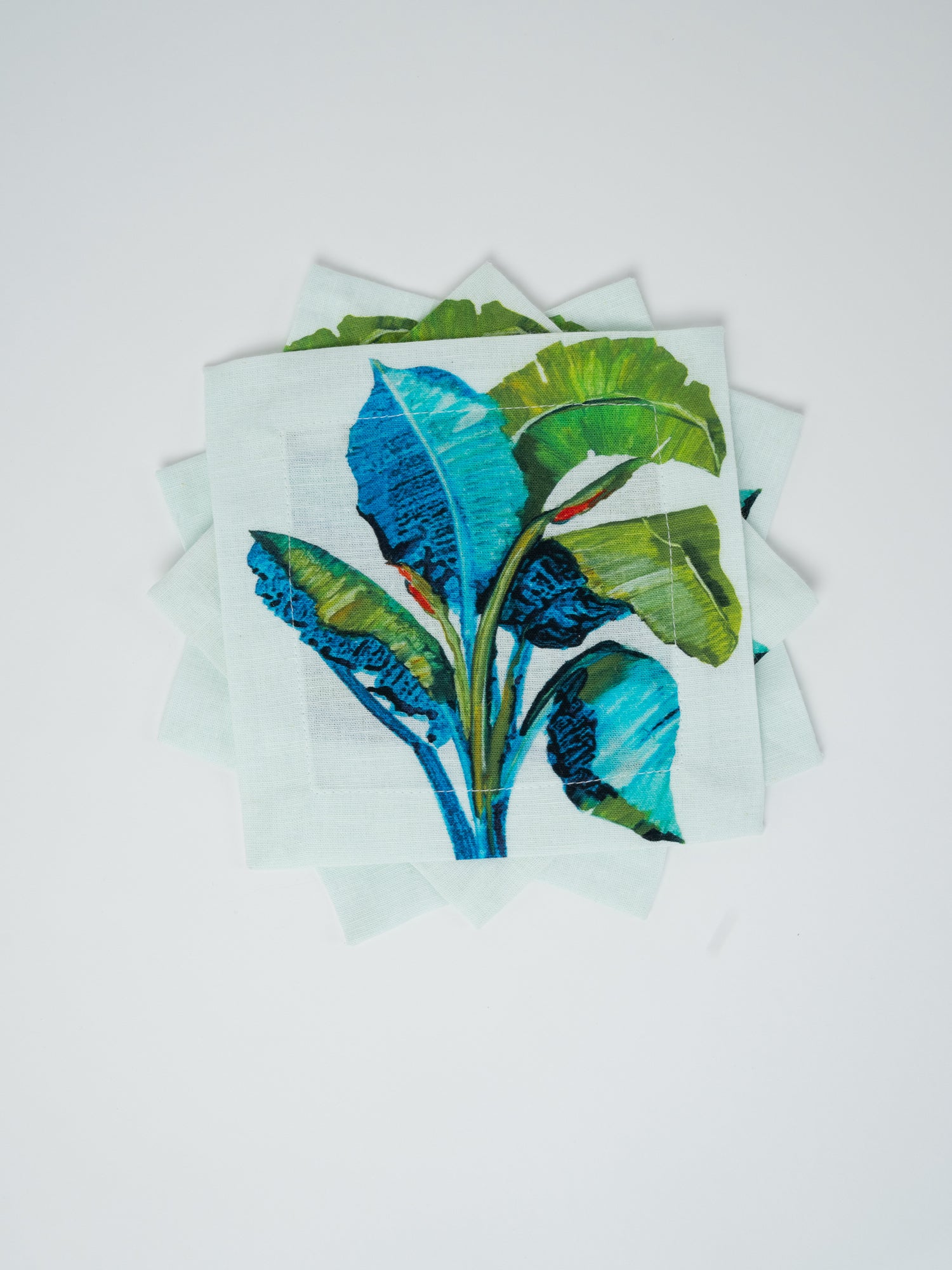 Elevate your entertaining with the Bellamy Leaves Cocktail Napkins, featuring bold banana leaf brushstrokes from a hand-painted canvas by Lowcountry artist, Bellamy. Vibrant and tropical, they’re the perfect accent for your bar cart, cocktail hour, or dinner party. Pair with the matching Bellamy Leaves tablecloth, runner, and dinner napkins for a cohesive look, and complete the moment with coordinating pieces from our exclusive summer clothing collaboration with Bellamy.