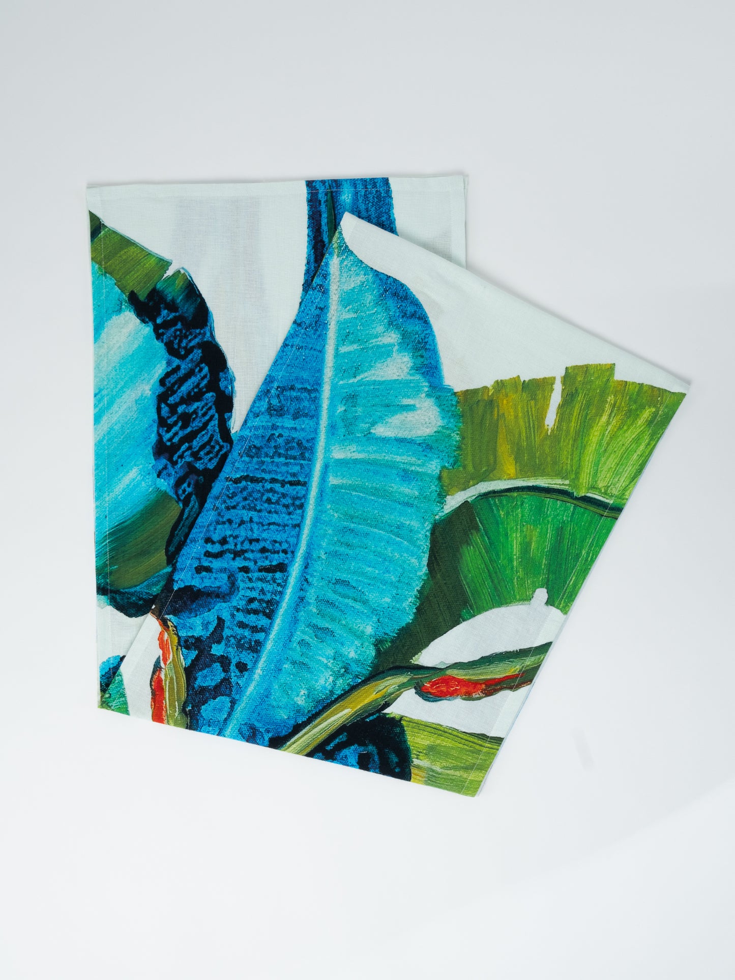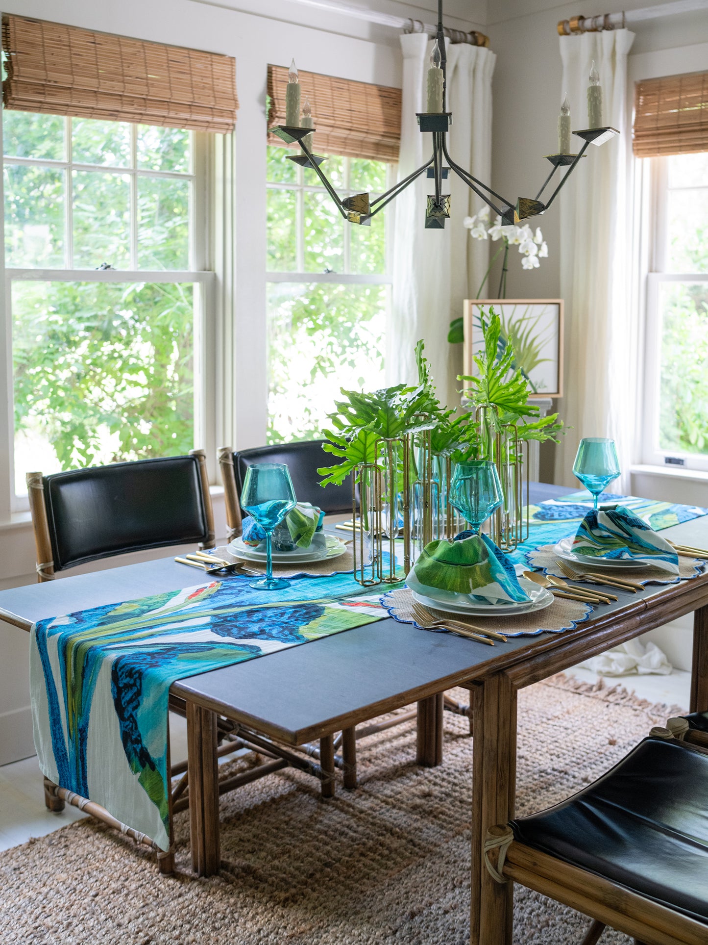 Make your table come alive with the Bellamy Leaves Table Runner, a vibrant masterpiece born from the brush of Lowcountry artist Bellamy Murphy. Translated from her original handpainted canvas, this runner bursts with lush green leaves and rich cobalt accents—bringing a playful, painterly edge to your next gathering. Perfect for layering over natural textures or bold solids, this runner sets the tone for effortless entertaining. Hosting a dinner party? Add the matching Bellamy Leaves cocktail and dinner napkins for a perfectly pulled-together look. Take it a step further with a coordinating Bellamy Leaves outfit for a hostess moment that’s nothing short of artful.