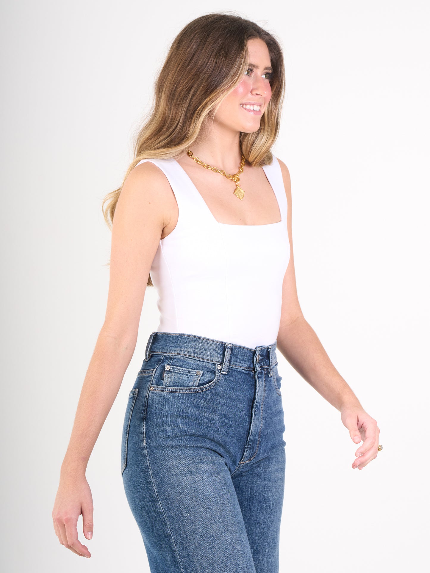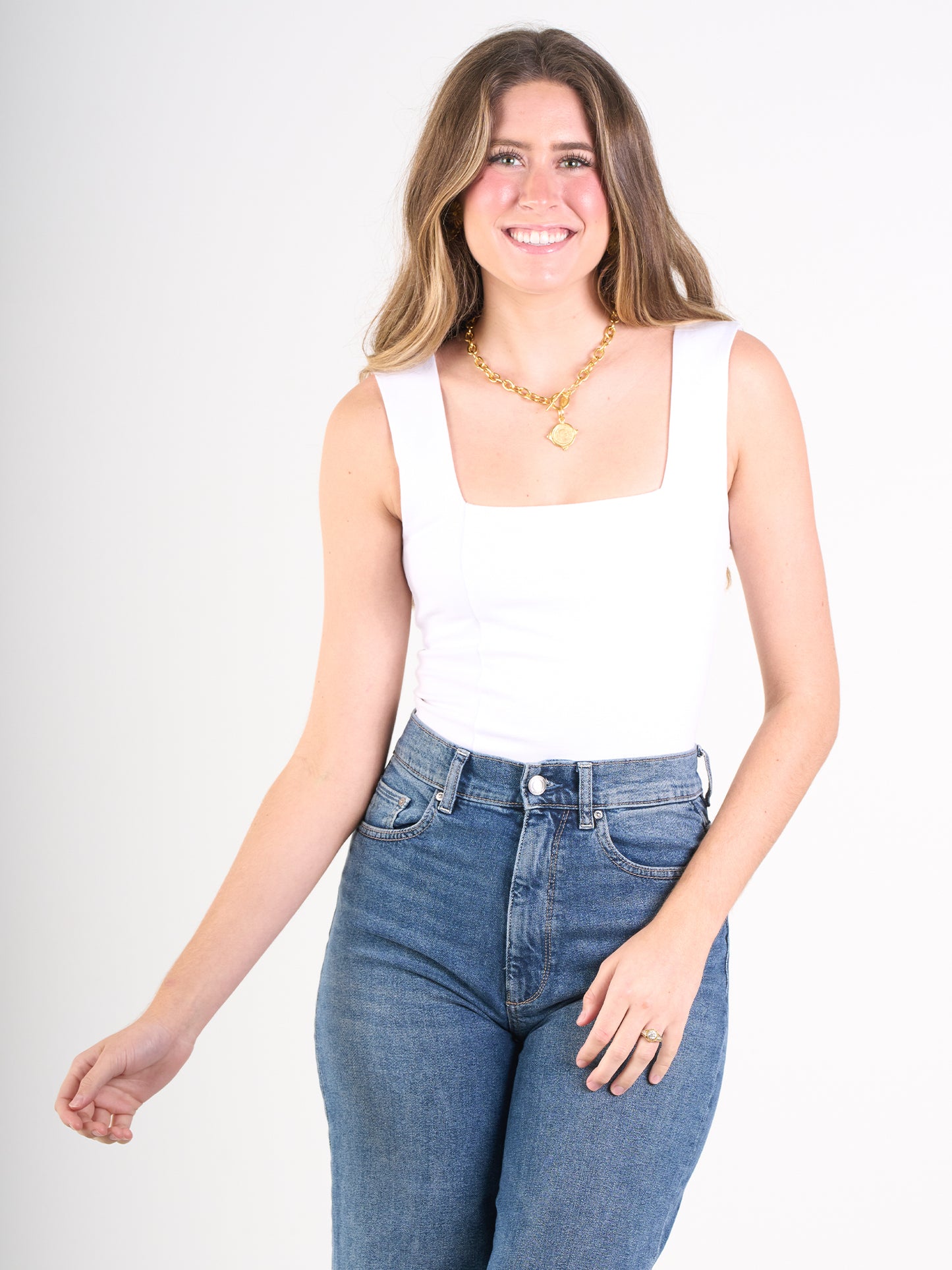 Built for the foundation of your wardrobe, the Blair Bodysuit delivers effortless style and everyday comfort. This ponte fabric is known for its smooth, structured feel that shapes and flatters your figure. The flattering square neckline and wide straps offer a timeless design that pairs perfectly with anything from high-waisted jeans to midi skirts. Princess seams create a clean, tailored silhouette, making this bodysuit a must-have for the Core program.
