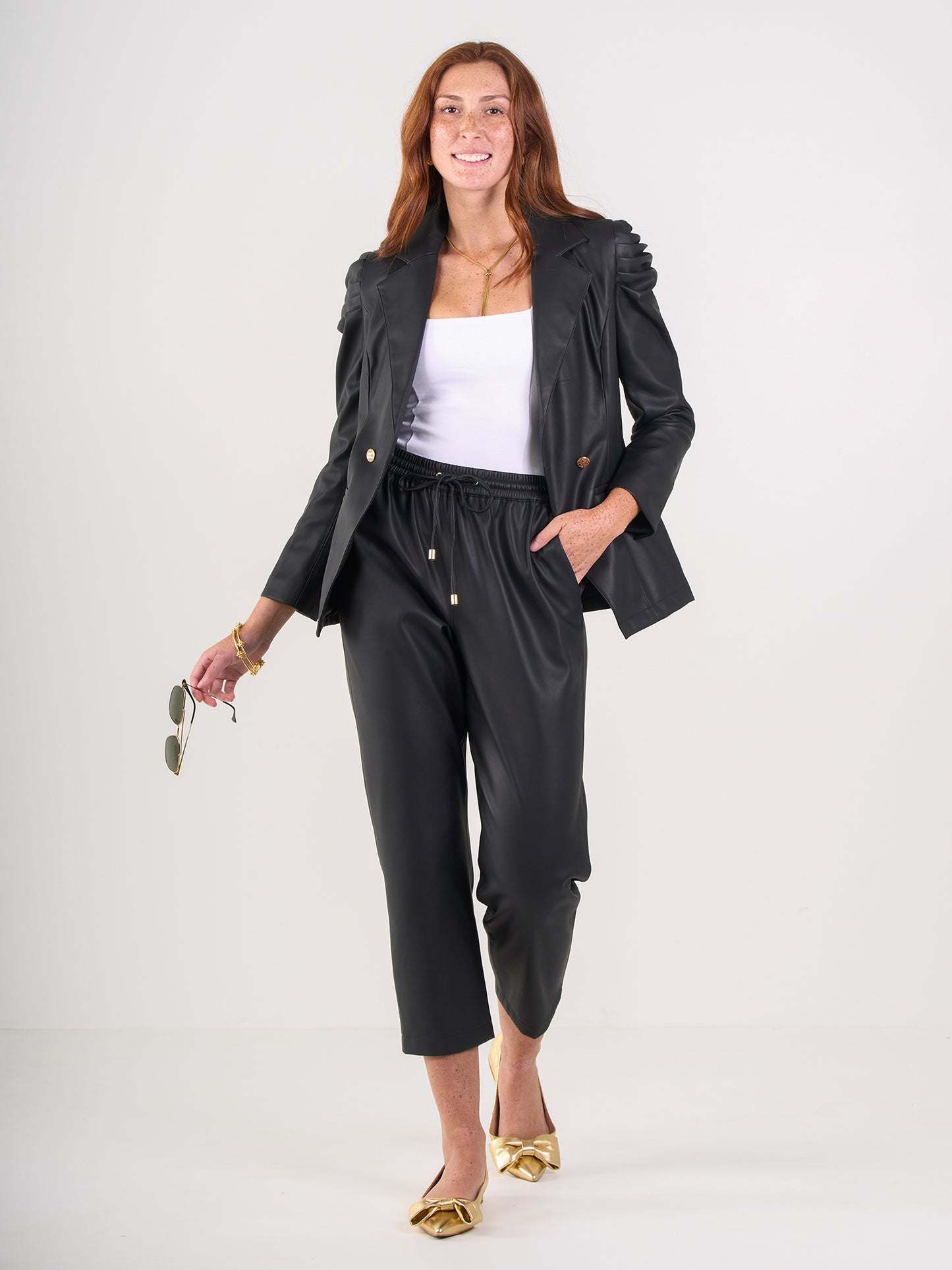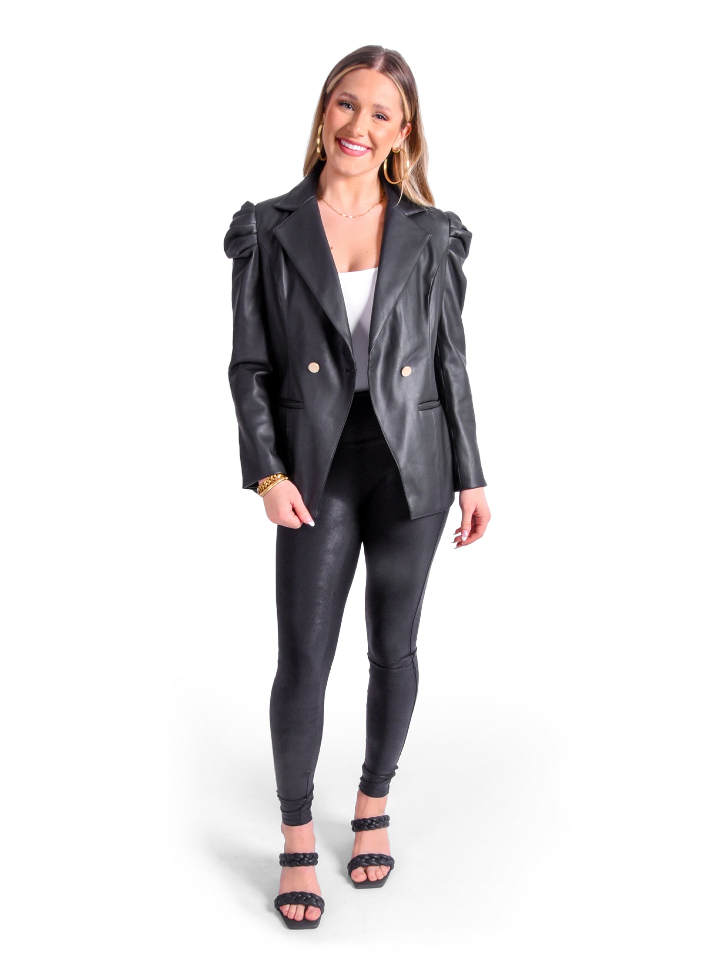 The Bradshaw Blazer is our favorite piece to date. The perfect business casual blazer, is elevated through structured sleeves and super soft faux leather fabric. This super forgiving and smoothing fabric offers 2 way stretch that makes this blazer look perfectly tailored to all bodies.