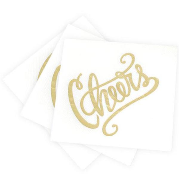 Cheers Cocktail Napkins - White & Gold