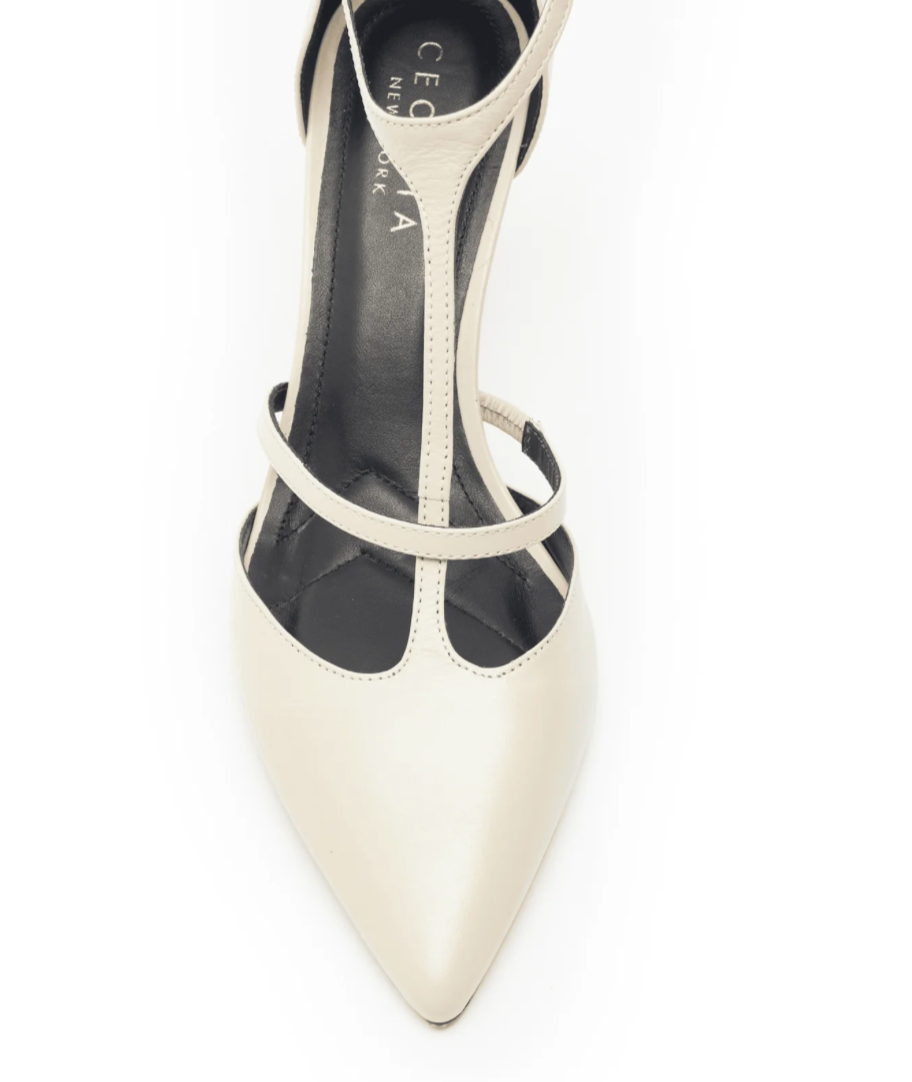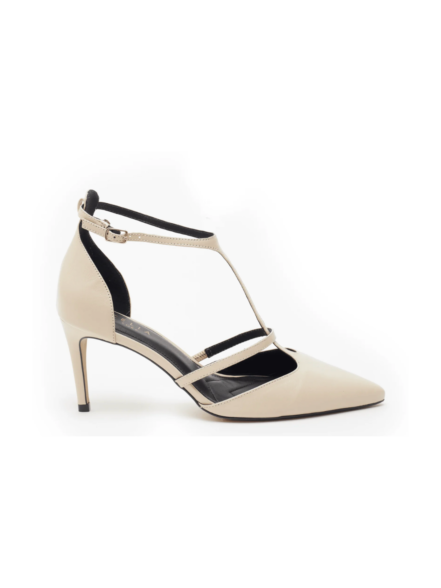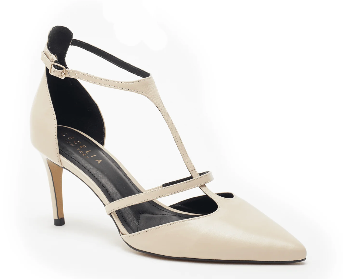 Dress to impress with this pump! Its sleek and modern design features a pointy toe and slim T-strap, adding instant allure to any outfit.