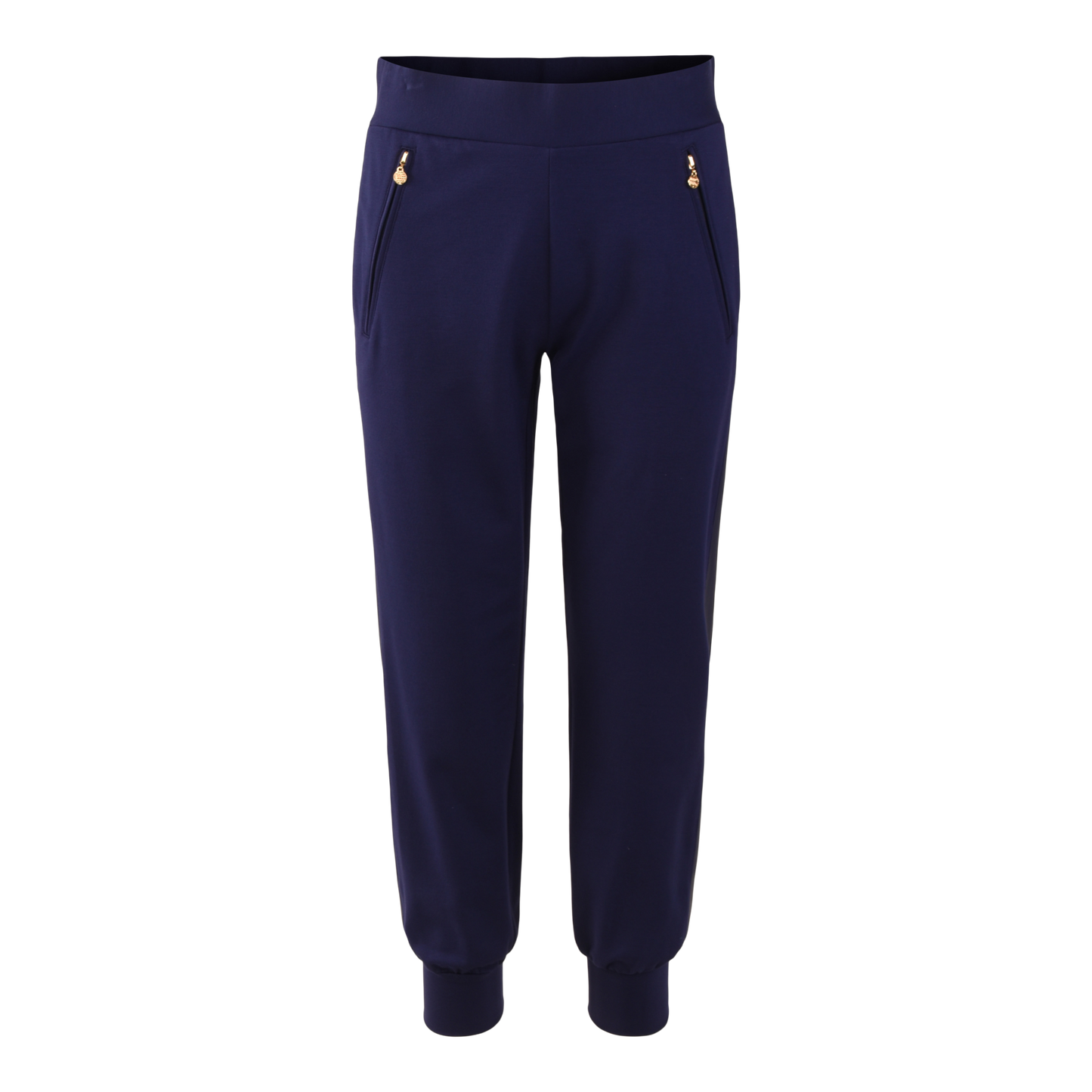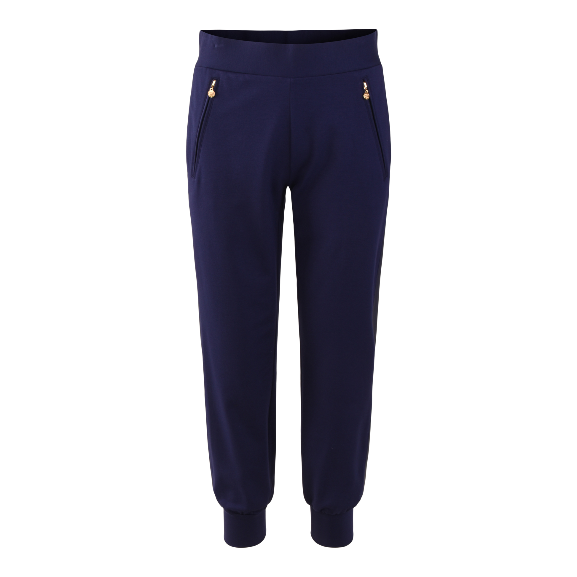 The Downtown Jogger in Navy Ponte is our go to for all things comfy & chic, the perfect combination of sophisticated and casual. A relaxed, yet elevated piece with added features of a vegan leather tuxedo stripe, cuffed ankle hem, and signature gold hardware zipped pockets. Crafted in our best-selling ponte fabric that provides comfortable softness and supportive stretch. Pair with the Navy Vegan Leather Poppy Top to accent the leather detailing!