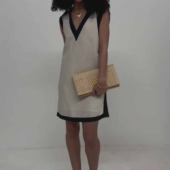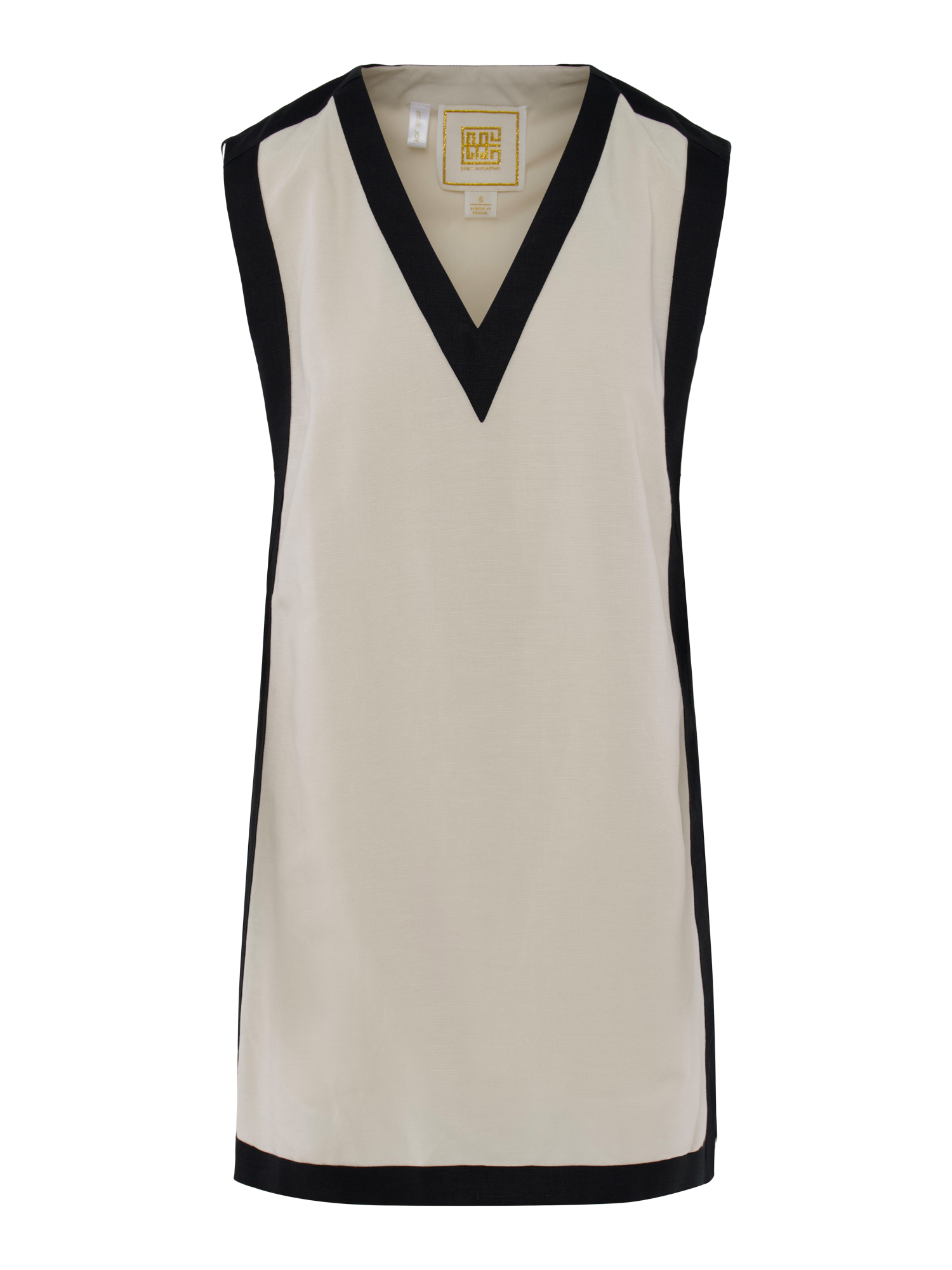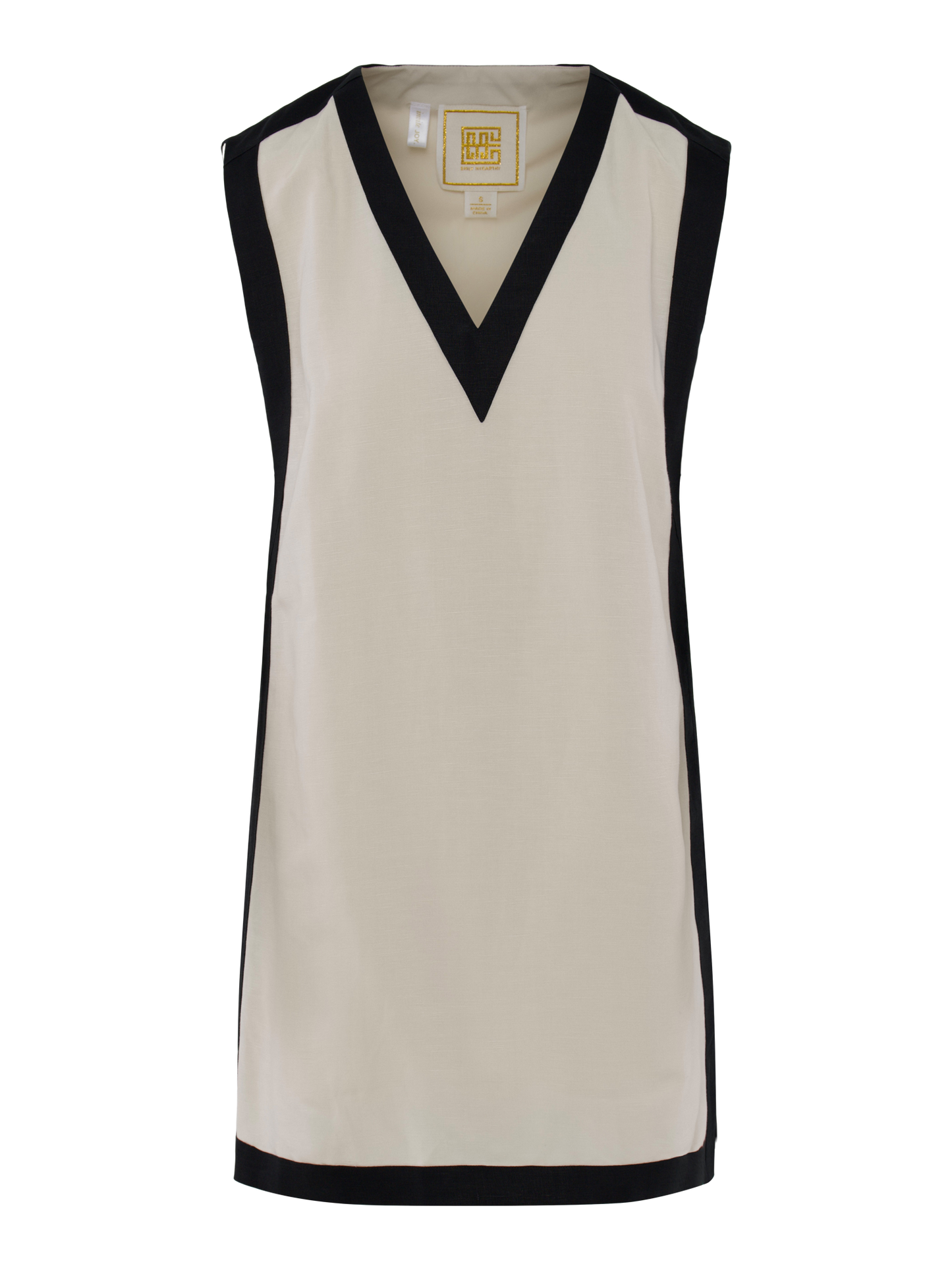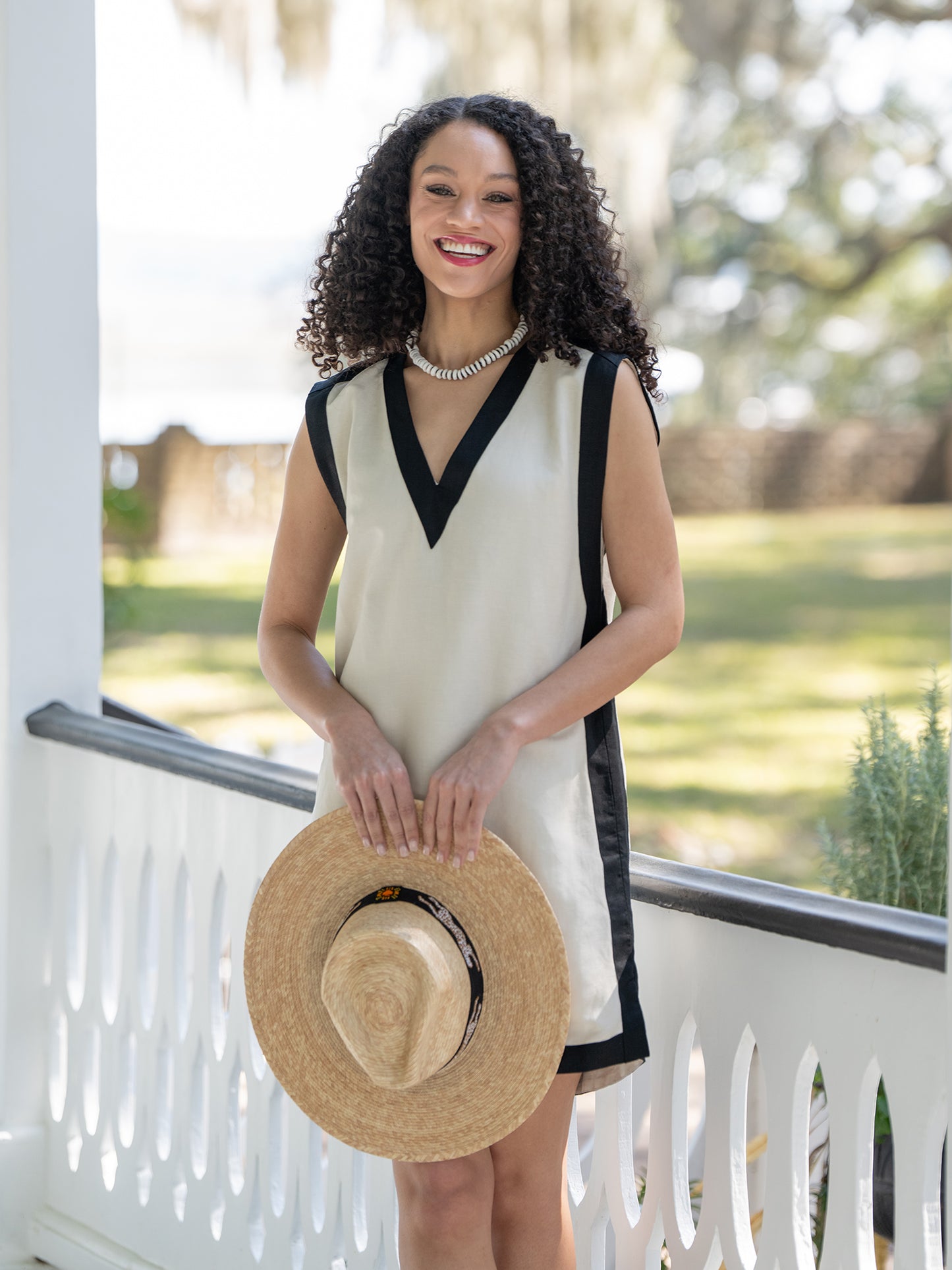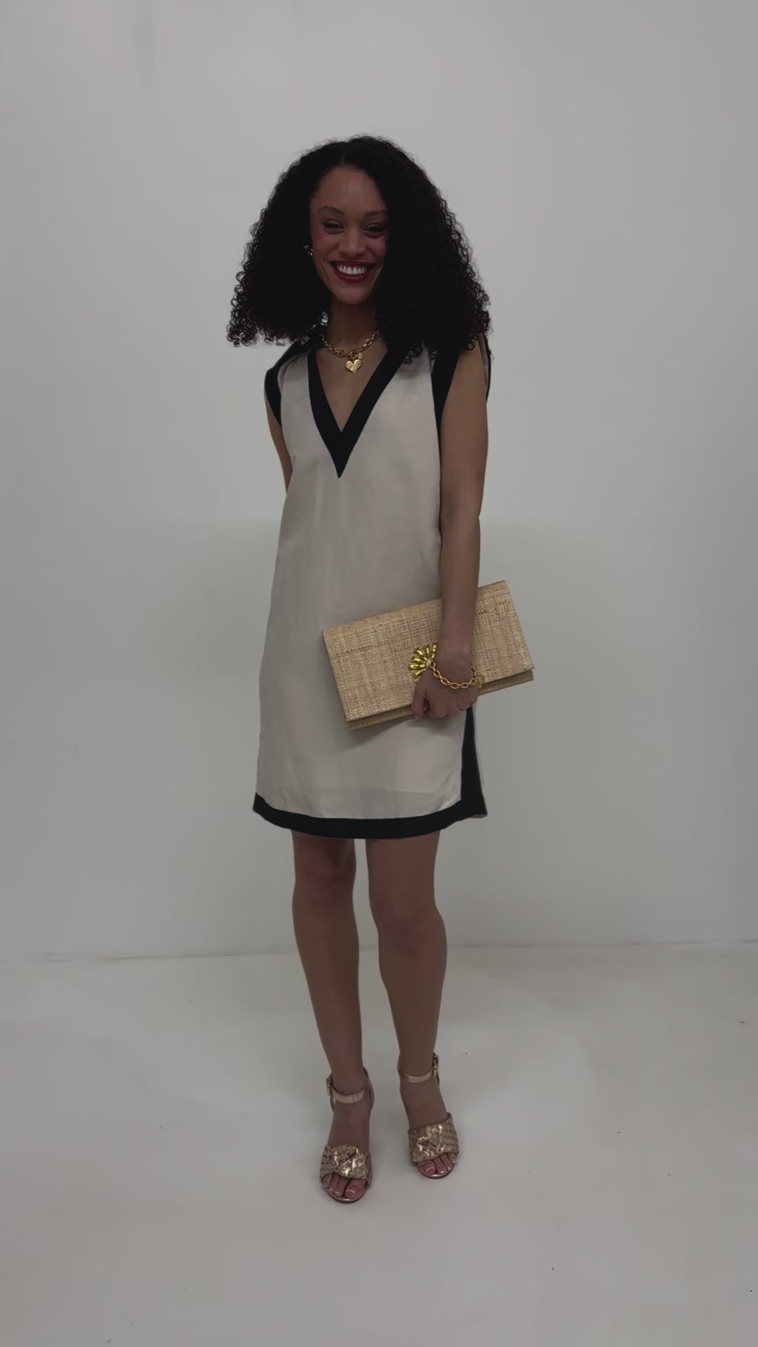 Chic, simple, and endlessly versatile—the Emily Shift Dress in Birch is your new go-to for summer ease. Designed with a relaxed yet slightly tailored silhouette, this effortless piece is finished with a sharp V-neckline and striking black trim for added contrast and a timeless touch. Crafted from lightweight, breathable linen, it’s the kind of dress you’ll reach for again and again—whether you're headed to brunch, beach strolls, or last-minute dinner plans.
