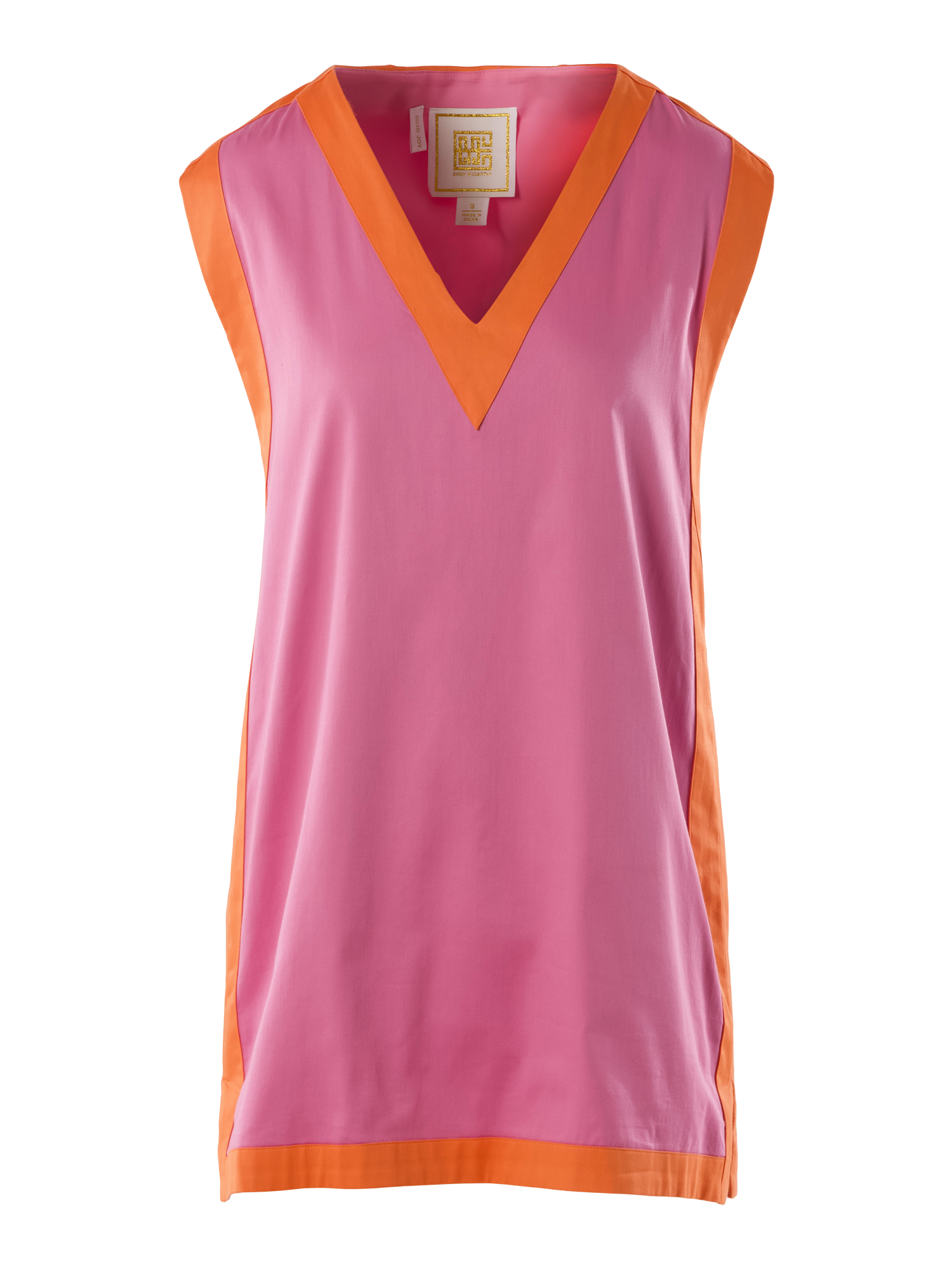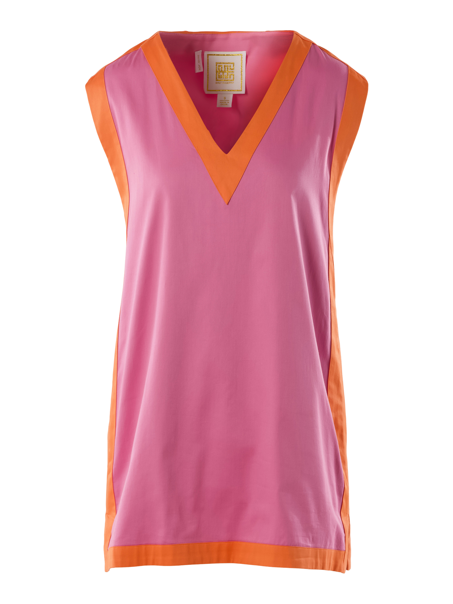 The Emily Shift Dress in Coral Pink is your statement-making staple for warm-weather style. Crafted in crisp cotton poplin, this effortless silhouette offers relaxed comfort with a tailored finish. The bold coral-pink body is framed with vibrant orange trim, delivering a playful pop of contrast. With its easy fit and eye-catching color combo, this dress transitions seamlessly from beach strolls to sunset cocktails.