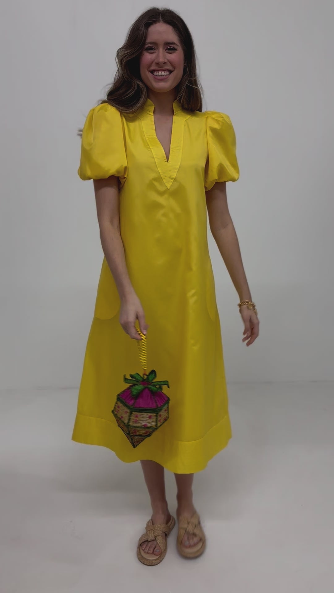 The Hampton Dress in Lemon is the perfect blend of playful charm and effortless refinement. Designed with a mandarin-style collar and voluminous puff sleeves, this silhouette offers an easy, breezy fit with timeless appeal. Crafted from a vibrant yellow taffeta, it adds a cheerful pop of color while remaining light and breathable. Side pockets add a practical touch, making this dress your go-to for sunny days and stylish moments.