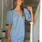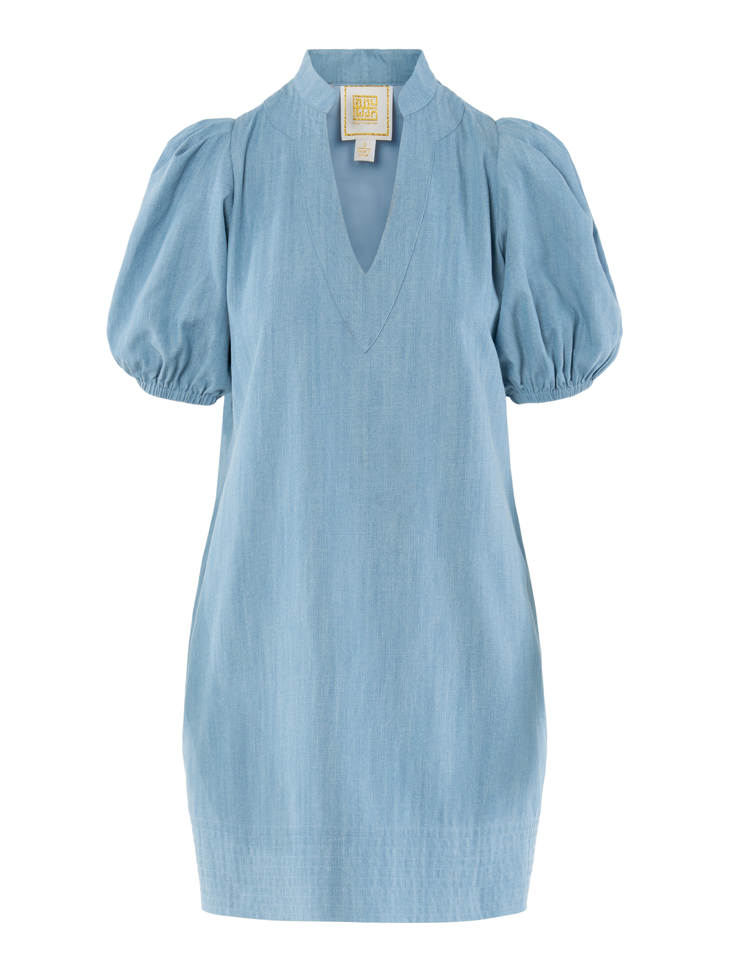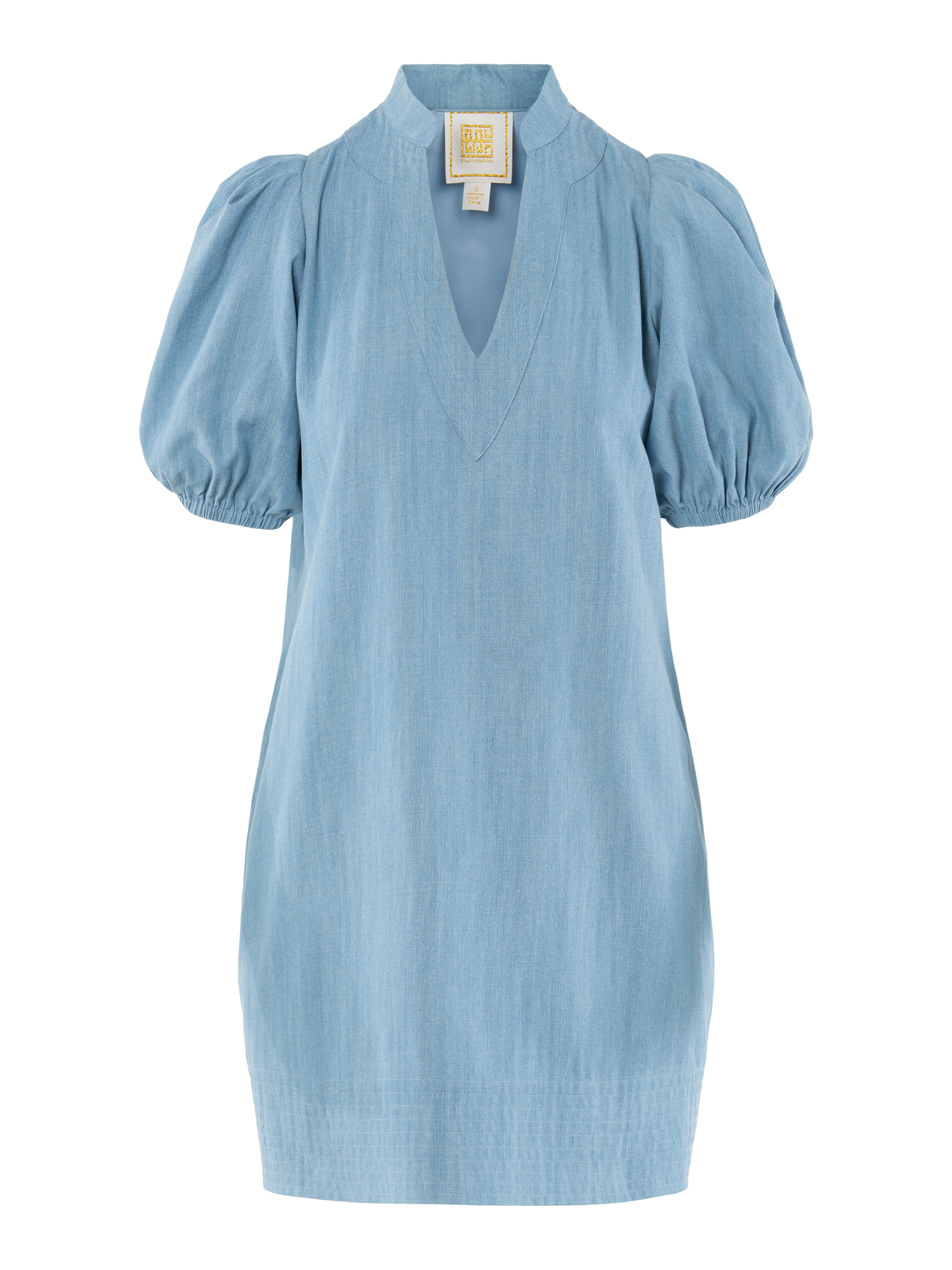 Lightweight and laid-back, the Hampton Mini in Denim Chambray is an easy favorite for transitional dressing. Crafted in a soft, breathable chambray fabric, this relaxed silhouette features a mandarin-style collar, puff sleeves, and subtle tailoring that adds shape without clinging. Finished with functional side pockets, it’s a versatile piece that moves seamlessly from casual afternoons to more polished plans with a simple change of accessories.