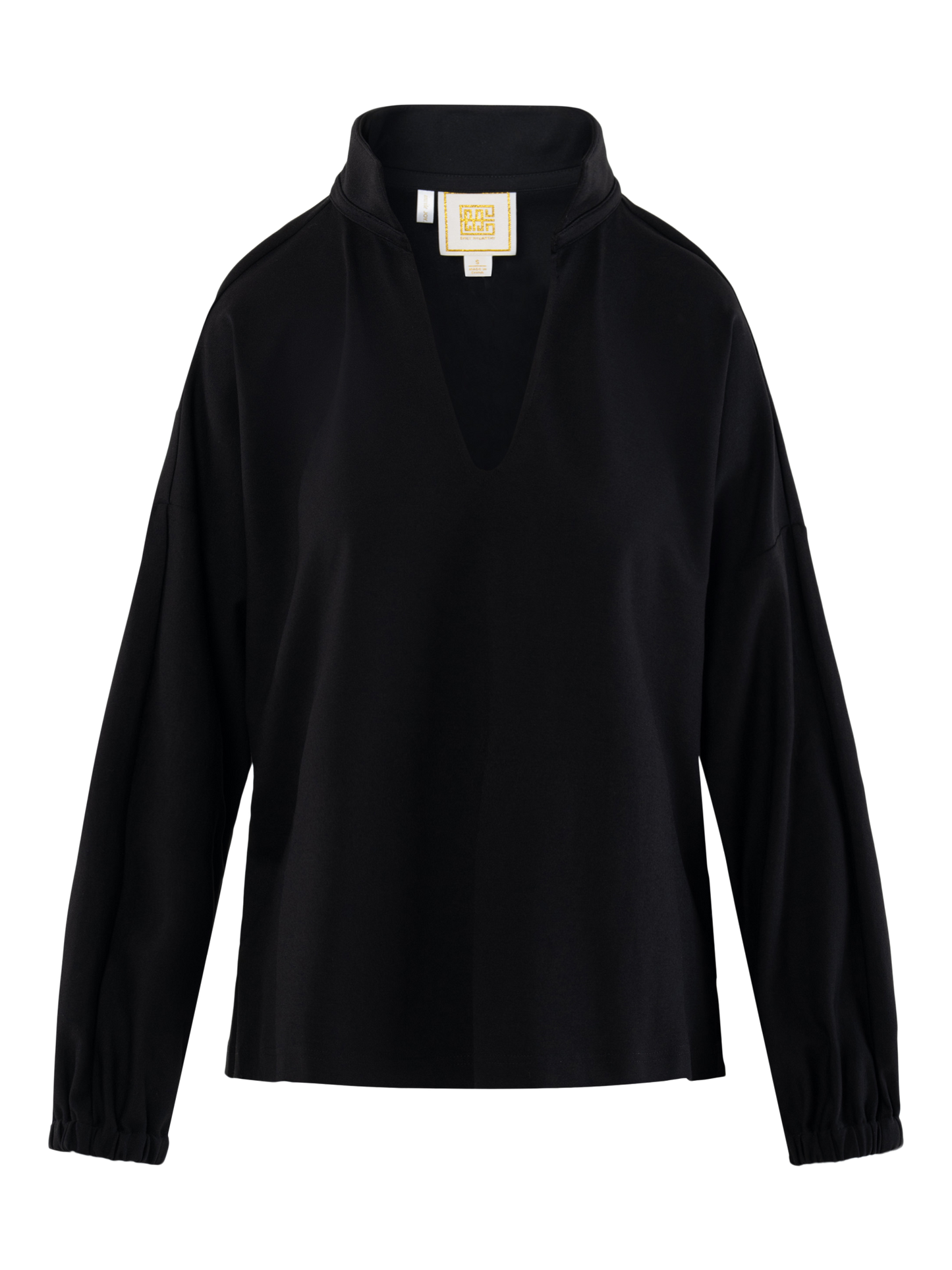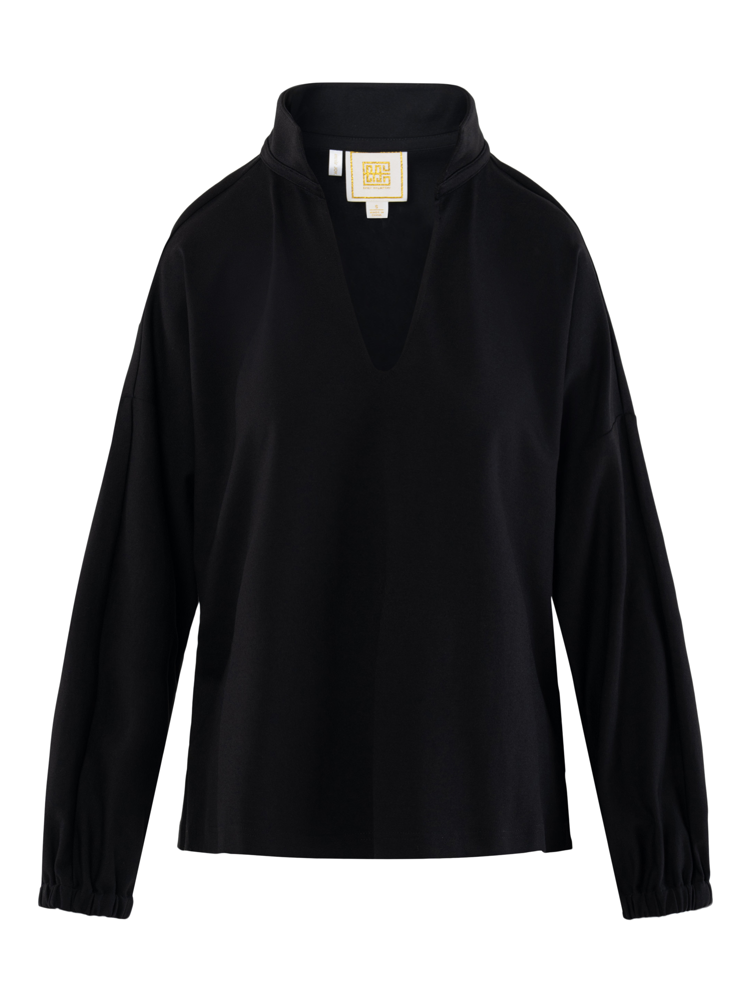 Sleek and structured, the Long-sleeve Poppy in Black Ponte offers a modern update to a classic silhouette. Crafted from soft yet substantial ponte knit, this style features a stand collar, elastic dolman sleeves, and a relaxed fit that moves with ease. Its clean lines and midweight fabric make it an ideal layering piece moving into the colder seasons. Polished yet comfortable, it's a versatile staple you'll reach for time and time again.