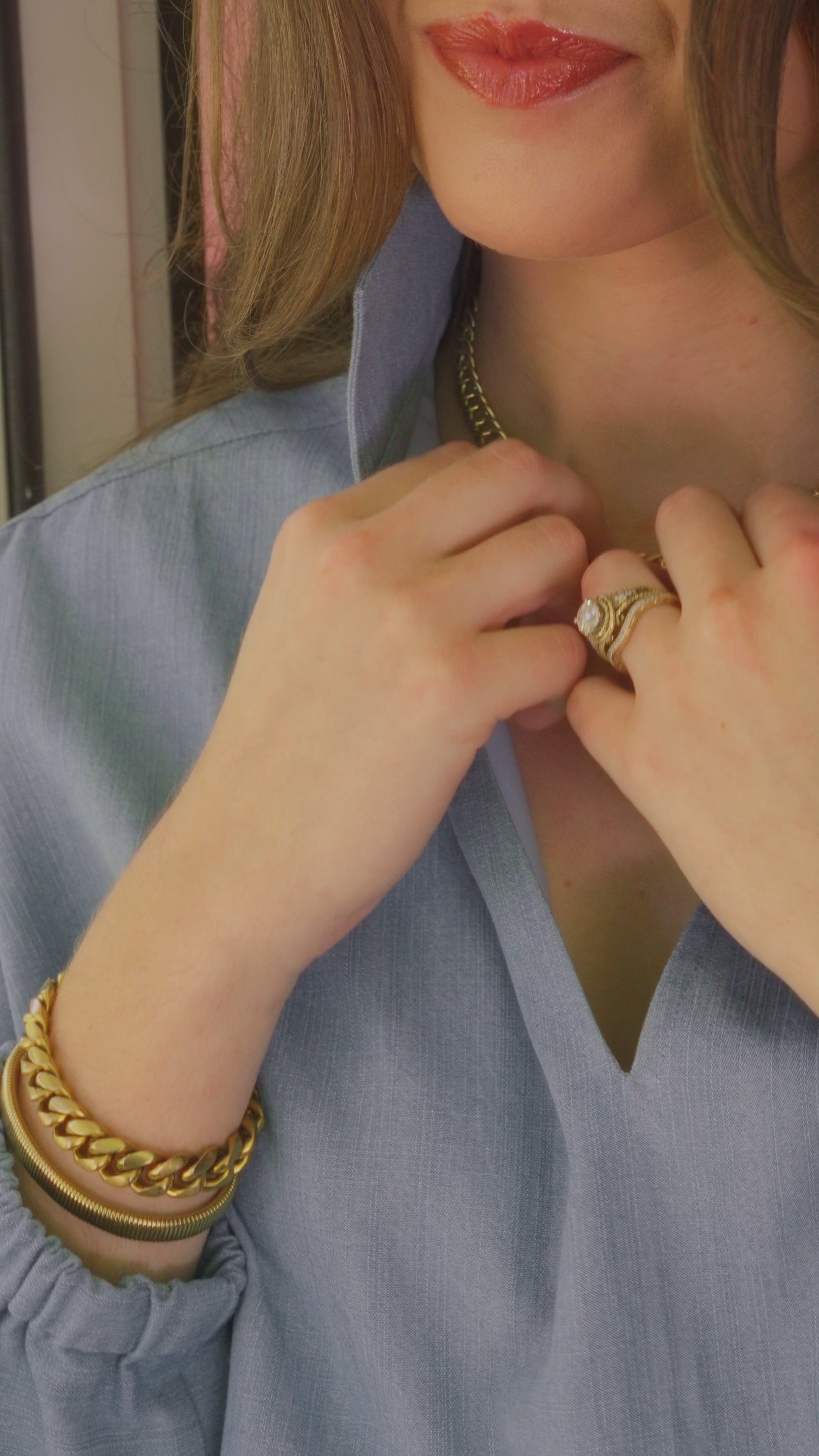 Easygoing and endlessly versatile, the Long-sleeve Poppy in Denim Chambray brings a relaxed polish to your everyday wardrobe. Designed with a stand collar, elastic dolman sleeves, and a loose-fitting silhouette, this lightweight chambray offers breathable comfort with a touch of luxe. Style it with crisp white bottoms for a fresh look or create a matching set with the coordinating Tailored Short. A transitional favorite perfect for layering or wearing solo.