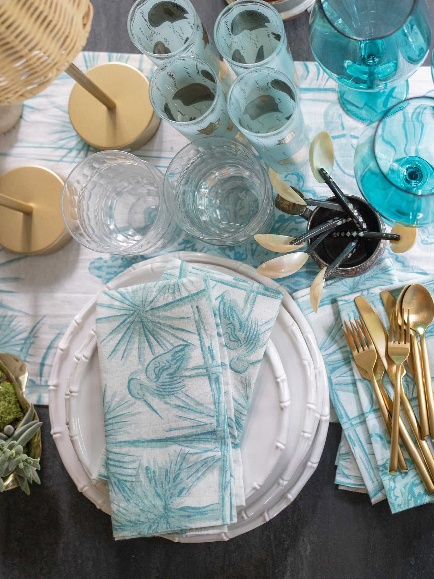 Set a serene coastal tone with the Low Country Dinner Napkins, featuring an array of beloved seaside icons—crabs, oysters, palms, herons, and more—rendered in soft, painterly strokes. Inspired by the beauty and rhythm of Lowcountry life, these napkins add a relaxed yet refined touch to any table. Pair them with the complete Low Country tabletop collection, including the matching tablecloth, table runner, and cocktail napkins, for a thoughtfully layered and effortlessly elegant setting. Perfect for everything from casual coastal dinners to elevated Southern soirées.