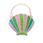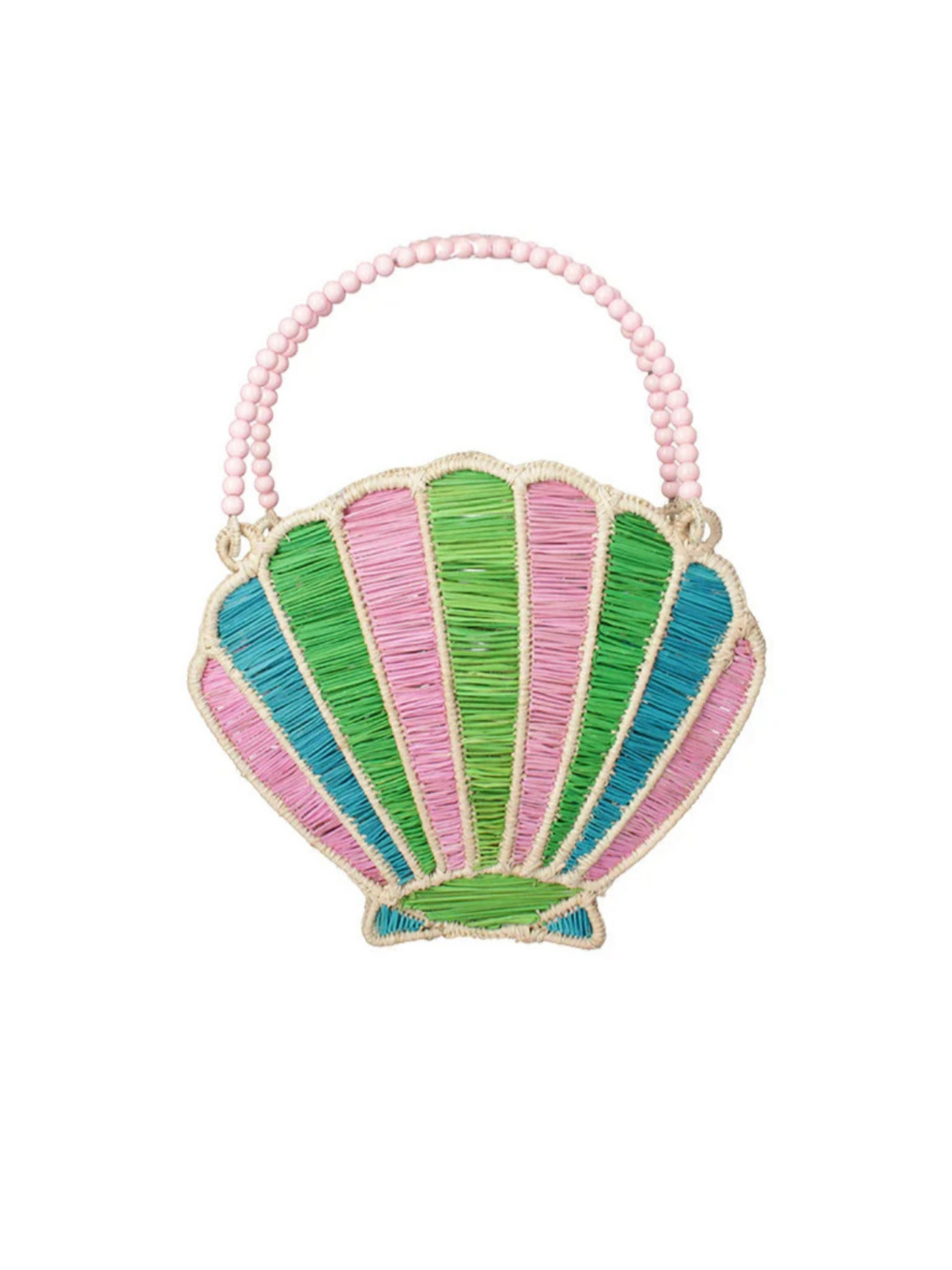 Handbag handmade by Mercedes Salazar forged in wire and hand-woven in natural raffia fiber in the shape of a shell, made by master artisans in Mercedes' workshop in Bogotá, Colombia.