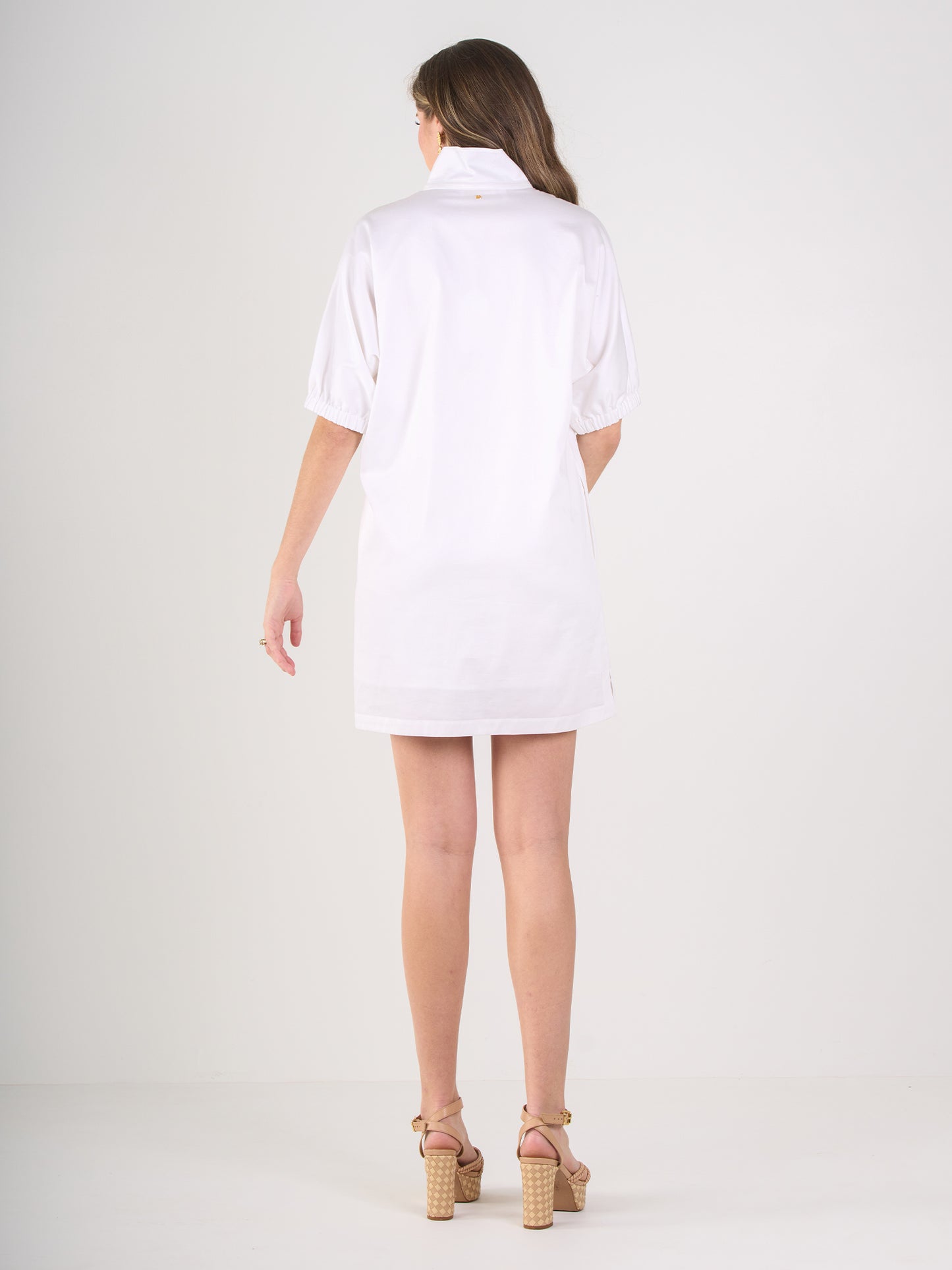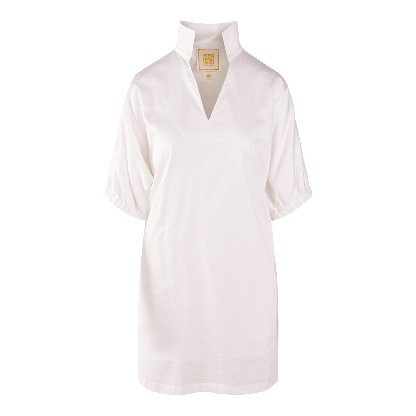 Our signature Poppy Dress in White Cotton Poplin is perfect for casual days and dressed up evenings. Loose fitting with an optional stand up collar and knee length hem. Dress up with a heel or go casual with a sneaker, the Poppy Dress is versatile for every style!