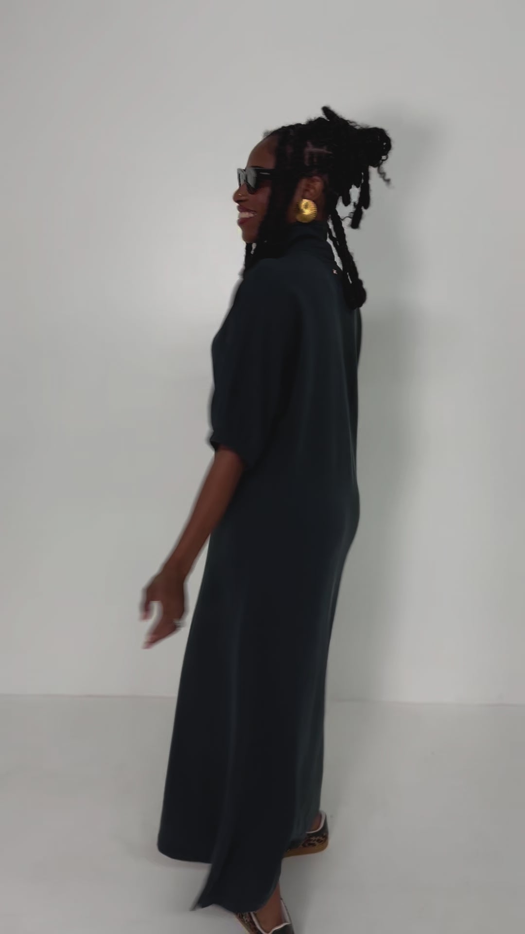 Luxe lounging has never been more effortless. The Poppy Maxi in Black French Terry provides functional versatility without compromising style. A breezy silhouette is complimented with loose elastic dolman sleeves and a classic popped collar. The ideal maxi dress for lounging, while also easily transitioning into everyday wear with a sneaker or loafer!