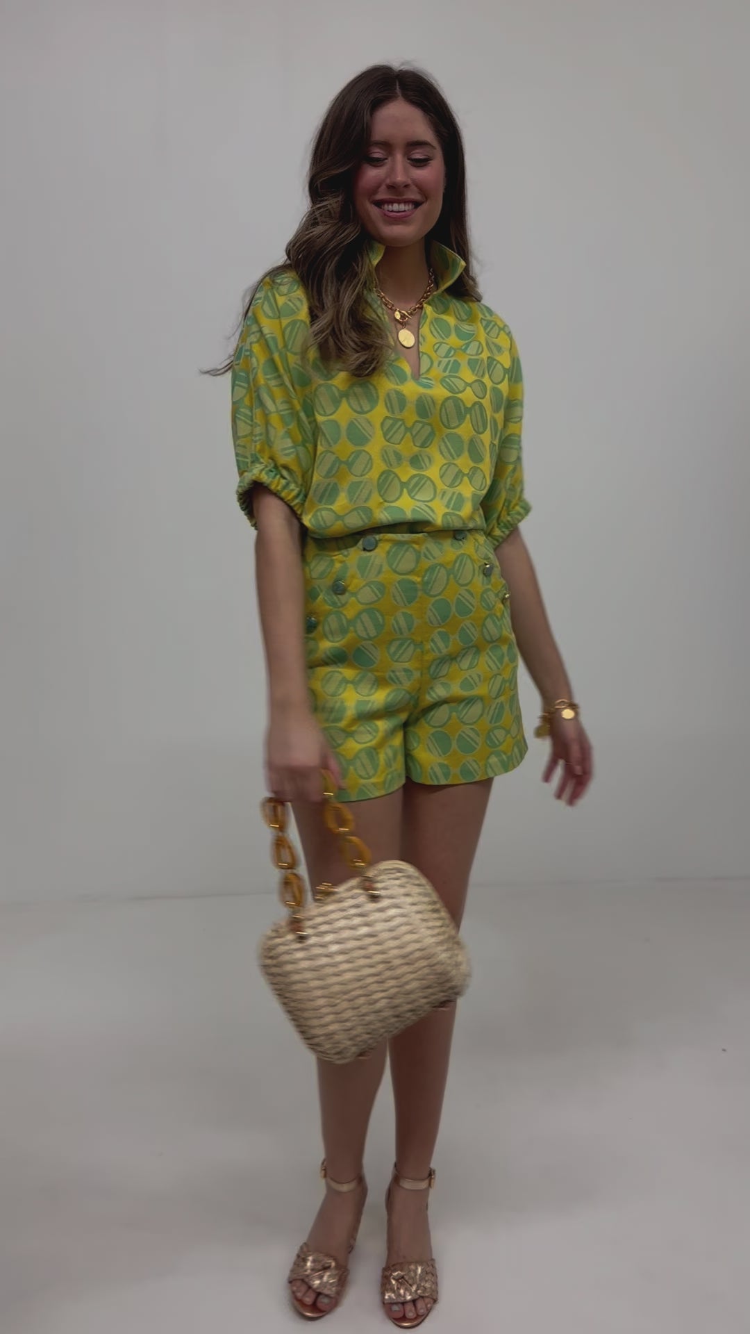 Bold, playful, and unmistakably chic — the Poppy Top in Spectacle is a celebration of individuality. Featuring a loose-fitting silhouette, classic stand collar, and easy dolman sleeves with elastic cuffs, it’s designed for comfort with a fashion-forward twist. The custom Spectacle print pays tribute to the iconic Iris Apfel, nodding to her signature statement eyewear and fearless love of color. A standout piece for those who dress with joy.