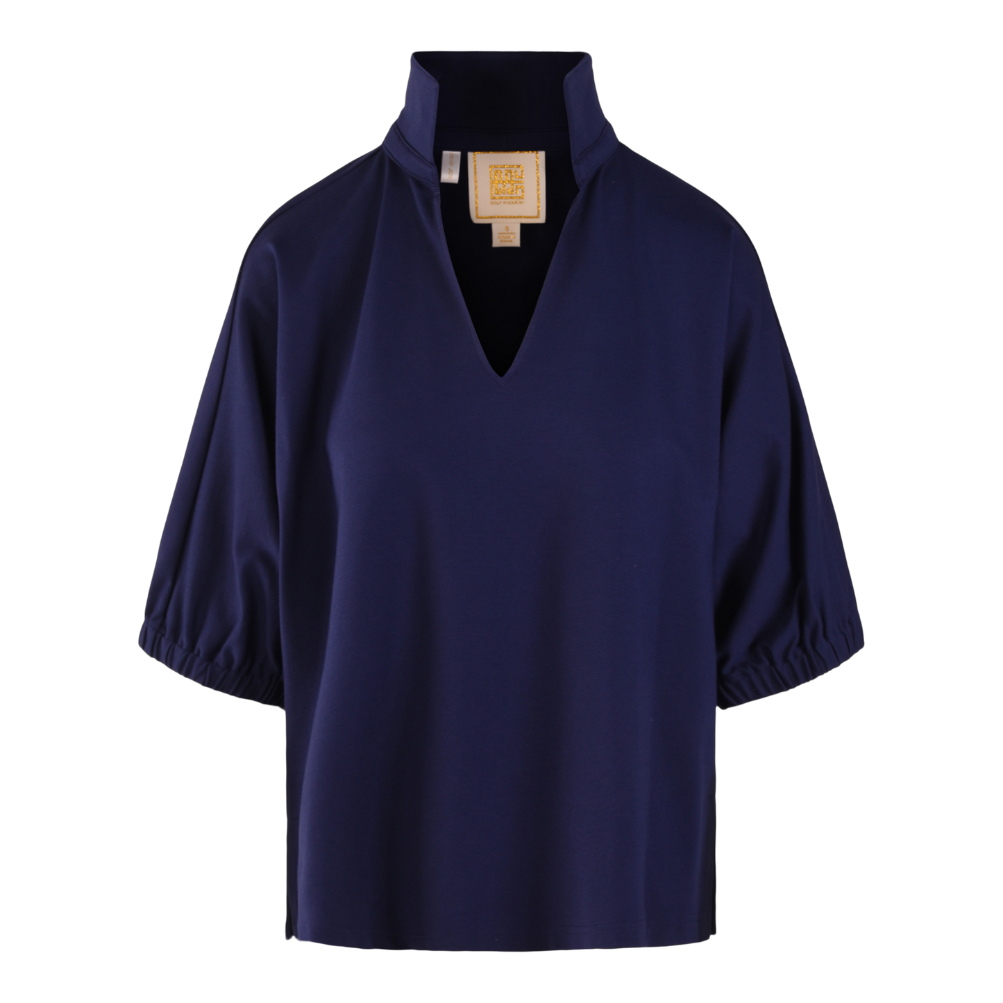 Our signature Poppy Top in Navy Cotton Poplin. A classic statement piece for any occasion. Pair with white denim & statement jewelry, from the office to drinks with friends. Loose-fitting with an optional stand up collar.