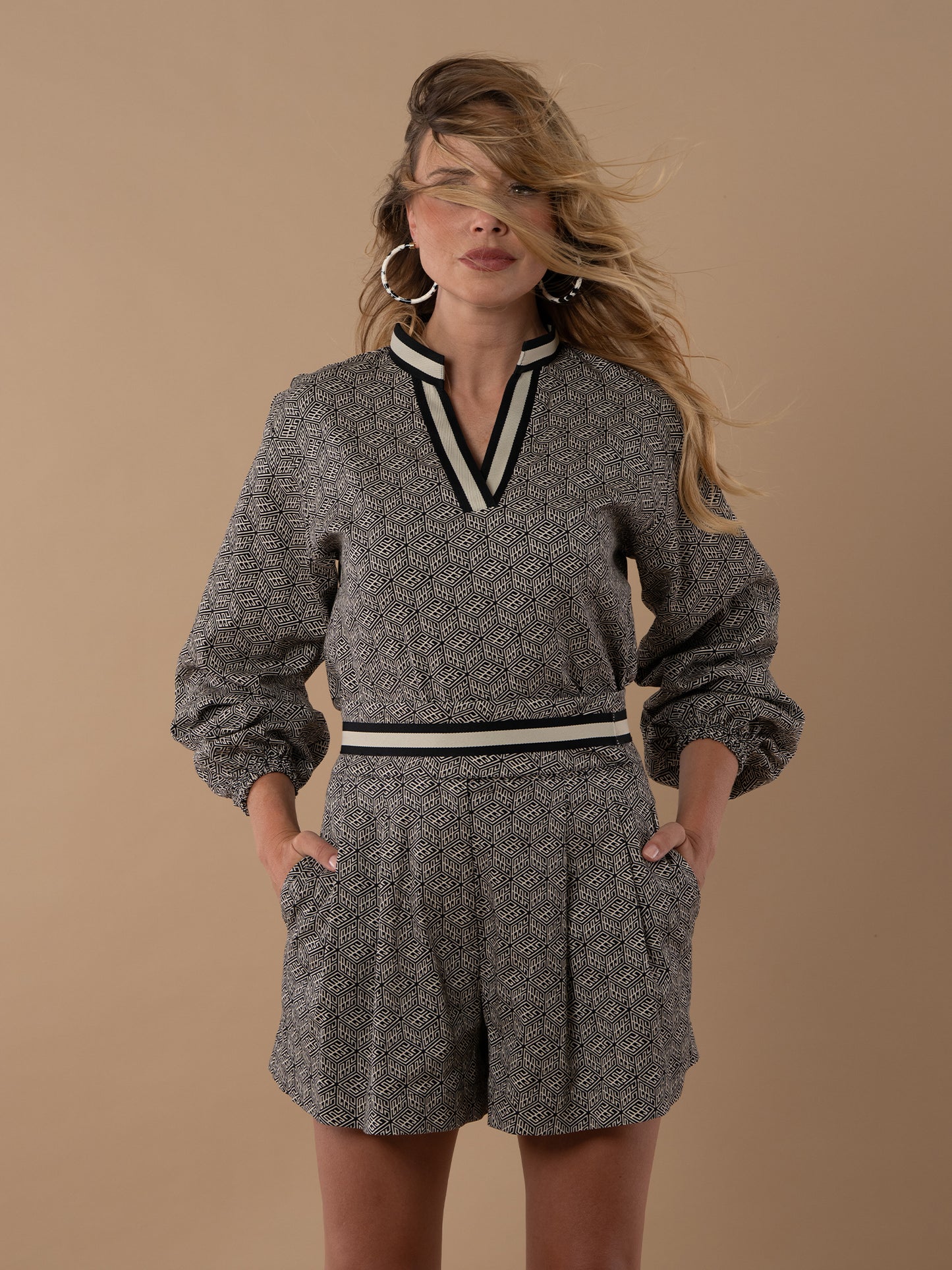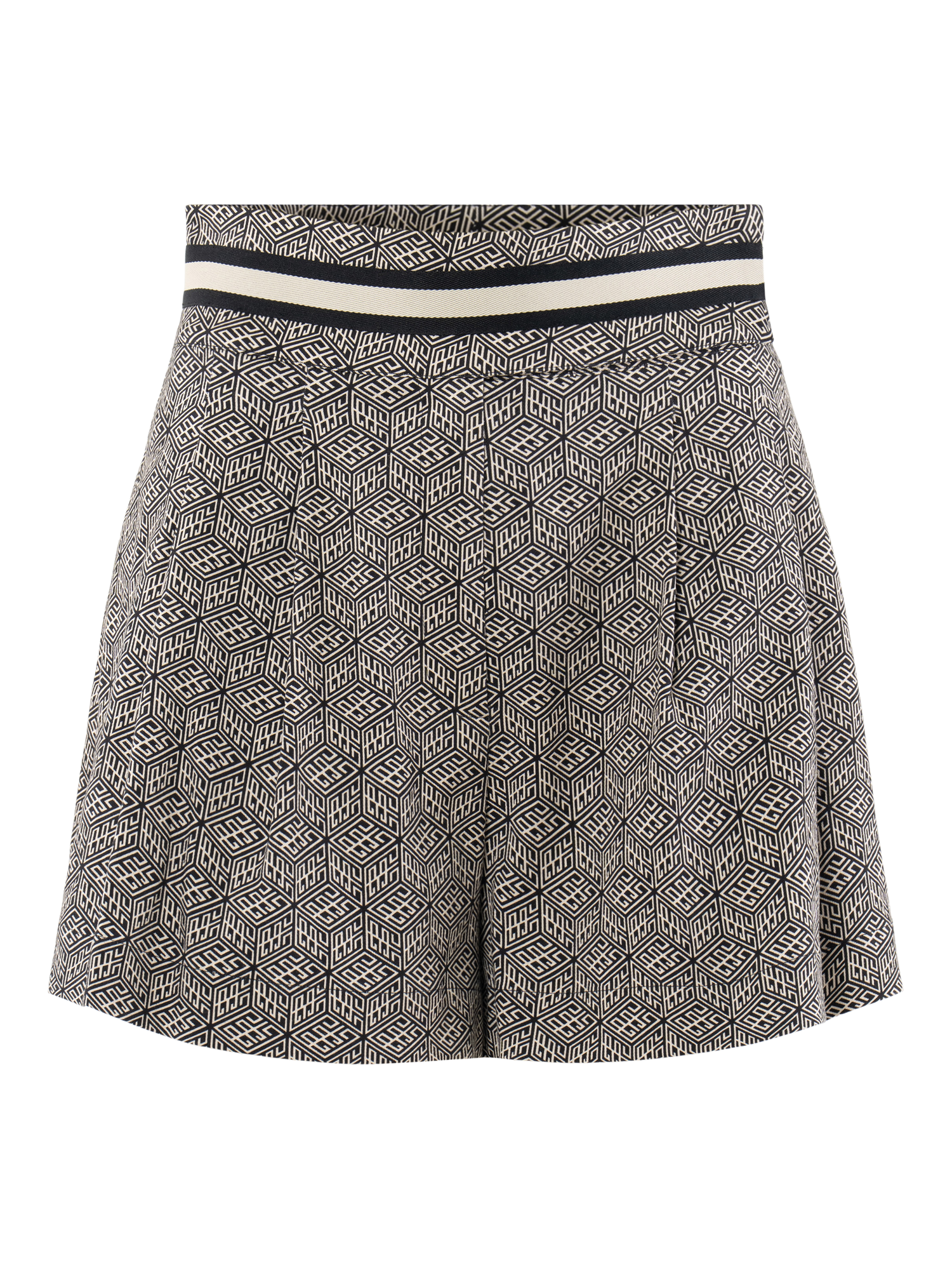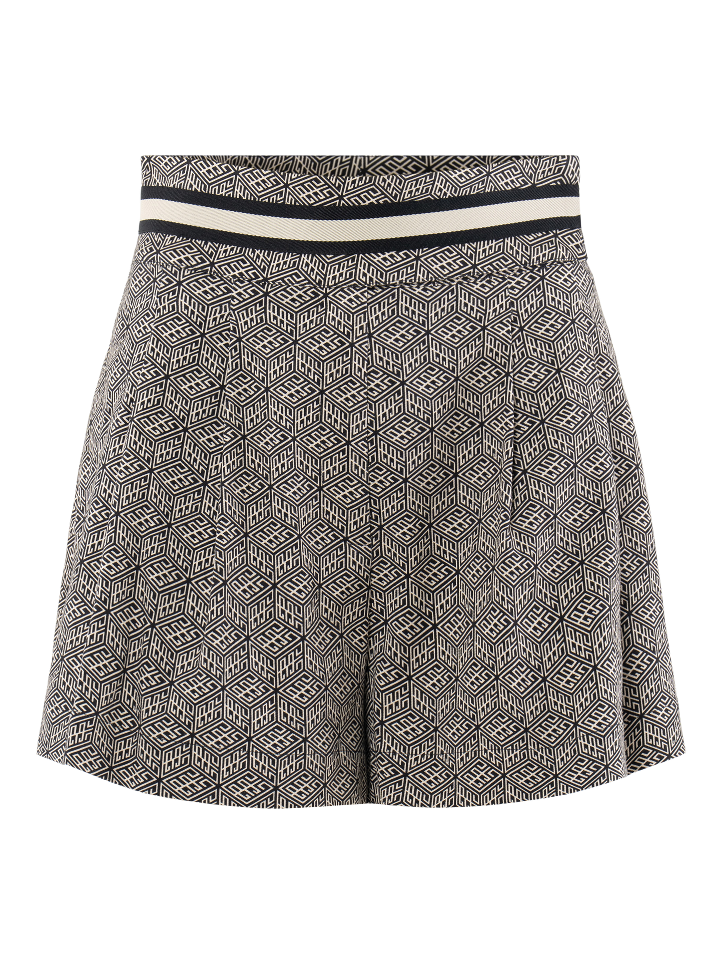 An everyday staple with elevated detail, the Relaxed Short in Black Tonal Monogram is designed with a flattering hook and eye closure, delicate pin tuck pleats, and practical side pockets. The black and white striped waistband adds a playful contrast to the allover tonal monogram print—an understated nod to the brand with a repeating logo motif. Effortless and polished, these shorts bring a modern, laid-back feel to your wardrobe while maintaining a tailored finish.