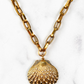 Feel the calming and refreshing vibes with the Shelly Necklace. Its minimalist yet elegant design is accented by a single shell pendant, evoking a sense of organic charm and coastal inspiration. This necklace is the perfect accessory for any outfit, bringing a touch of nature and style to your wardrobe. Add a peaceful and beautiful touch to your look with the Shelly Necklace.