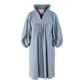 Everything you love about the Stella style reimagined into a midi dress! Featuring a ruffle stand collar, long blouson sleeves, and side pockets exuding both functional and joyful style. Crafted in our lightweight denim chambray fabric that is perfect for year-round wear and allows a loose, relaxed fit. With such versatility, the Stella Midi pairs well with anything from sneakers to heels!