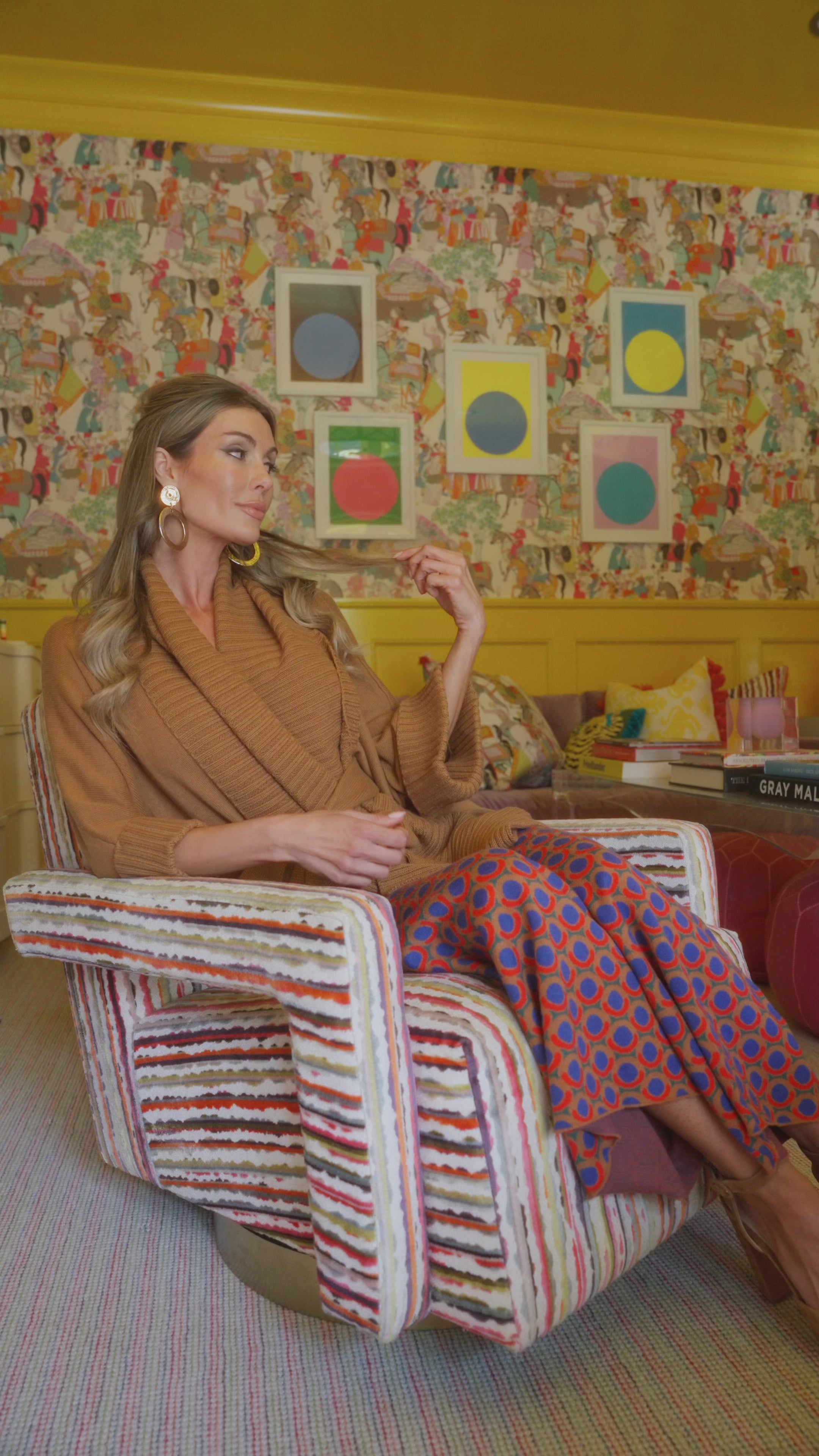 The Teddy Crop Trouser in Mod blends vintage charm with modern ease. Designed with a drawstring waistband, high-waisted silhouette, and cropped wide-leg fit, this style offers comfort without compromising on style. The Mod print is a vibrant nod to 60s and 70s Italian design, bringing playful sophistication to your look. Pair with the matching Clara Cardigan for a cozy yet polished knit set.