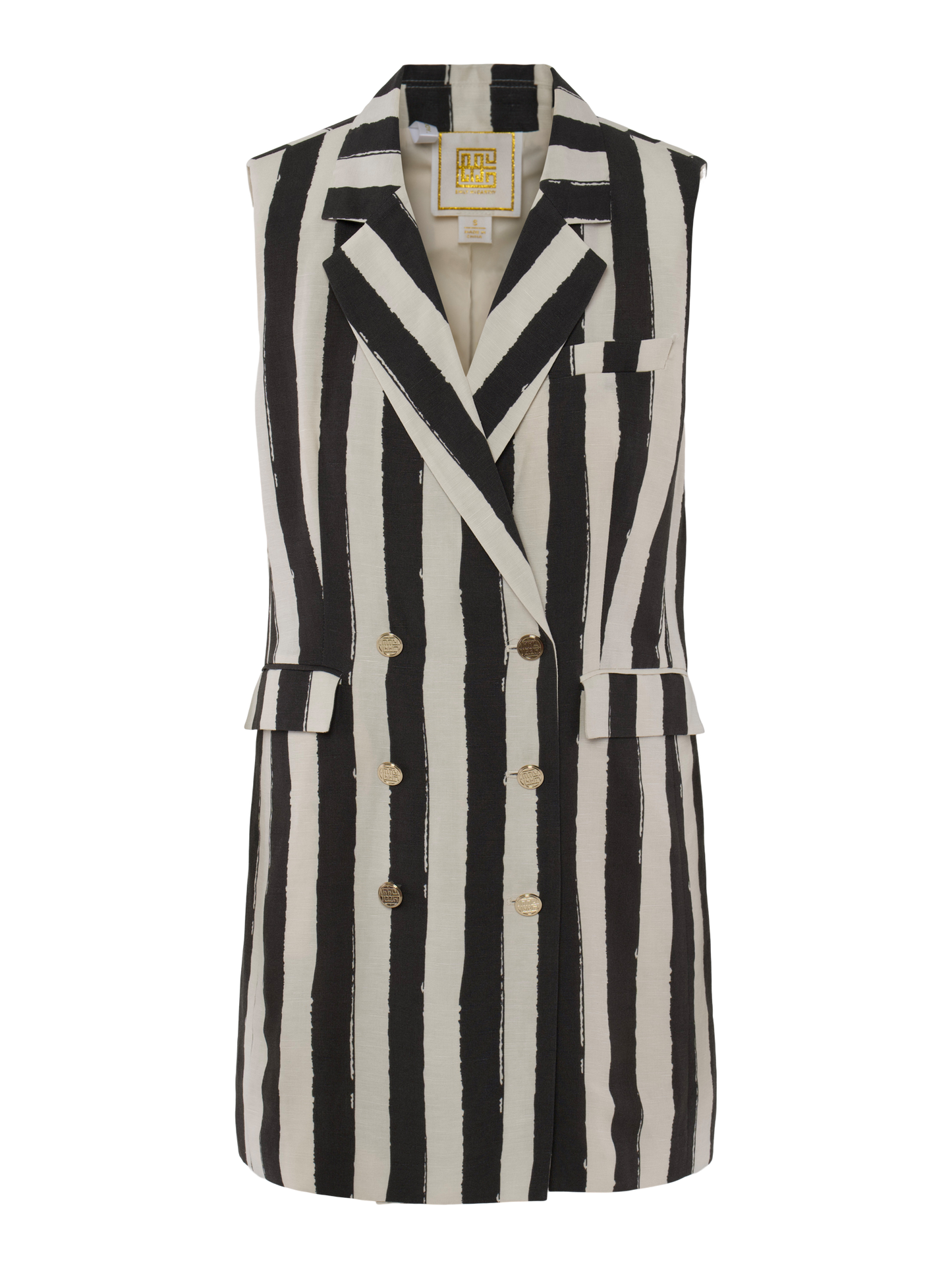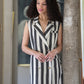 A modern take on the classic blazer dress, the Veronica Dress in Stripe Noir features a sharp lapel collar, double-breasted button closure, and a clean, tailored fit. The painterly stripe print adds dynamic contrast, making it a bold yet versatile piece for your elevated everyday wardrobe. Structured, stylish, and effortlessly polished with its luxurious linen fabric. Pair with gold accessories for a refined, elevated look!